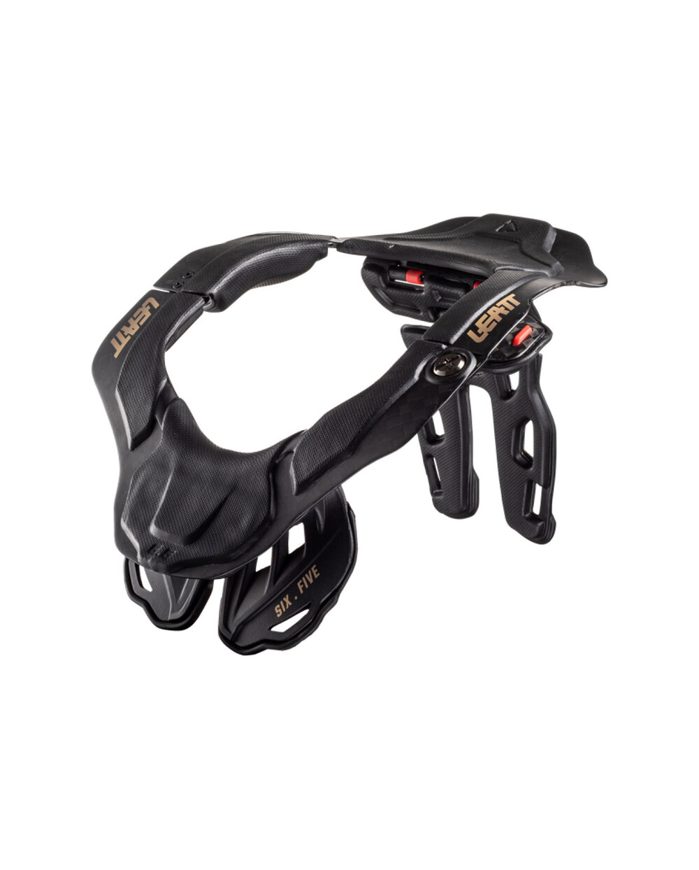 Okolica Leatt 6.5 je vodilna v svojem razredu in je izbira prvakov moto in MTB. Vodilna vratna opornica te blagovne znamke, Leattova vratna opornica, dokazano zmanjšuje sile v vratu in poškodbe vratu. Izrez za ključnico ščiti obroč čelade pred krhkimi kostmi, zadnja opornica pa je zasnovana tako, da se ob prevelikem pritisku na hrbet odlomi.