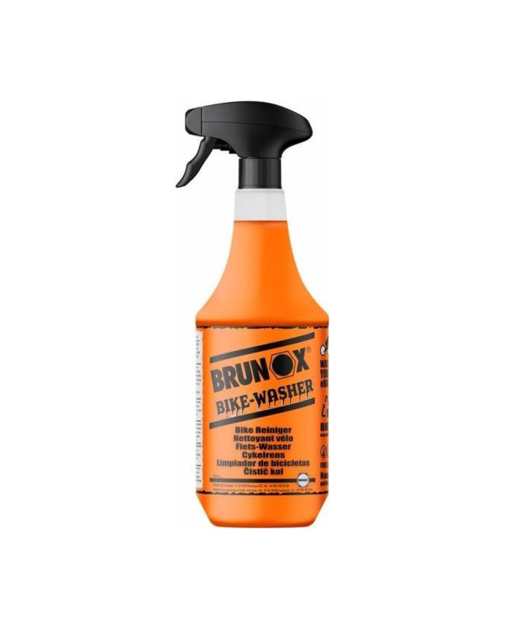 Brunox® BIKE-WASHER je biološko razgradljivo čistilo, ki se lahko univerzalno uporablja za vsa kolesa, tudi električna. Zahvaljujoč svoji gelski sestavi se izdelek lahko oprime tudi navpičnih površin in brez ostankov odstrani tudi ekstremne nečistoče, kot so olje, mast, cestni prah ali umazanija. Umazane verige, verižniki in kasete bodo spet bleščeče čisti. Brunox® BIKE-WASHER je zaradi svoje nežne gelske formule združljiv z vsemi materiali.