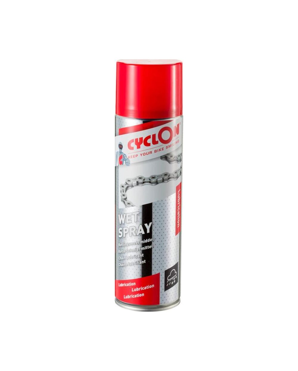 CyclOn Wet Weather Spray je sprej za mazanje verig, primeren za mokre in ekstremne vremenske razmere. Zaradi posebne sestave olje ostane med členi verige in ga dež ali blato ne spereta. Posledično bo vaša veriga dobro namazana in bo dobro prestavljala tudi v najbolj ekstremnih razmerah. Ne glede na to, ali se vozite po asfaltu, premagujete poti ali se podajate na pustolovščine zunaj cest, je CyclOn sprej za mokro vreme odličen spremljevalec za vsa kolesa. To mazivo je posebej zasnovano za kolesa, ki so izpostavljena težkim razmeram.