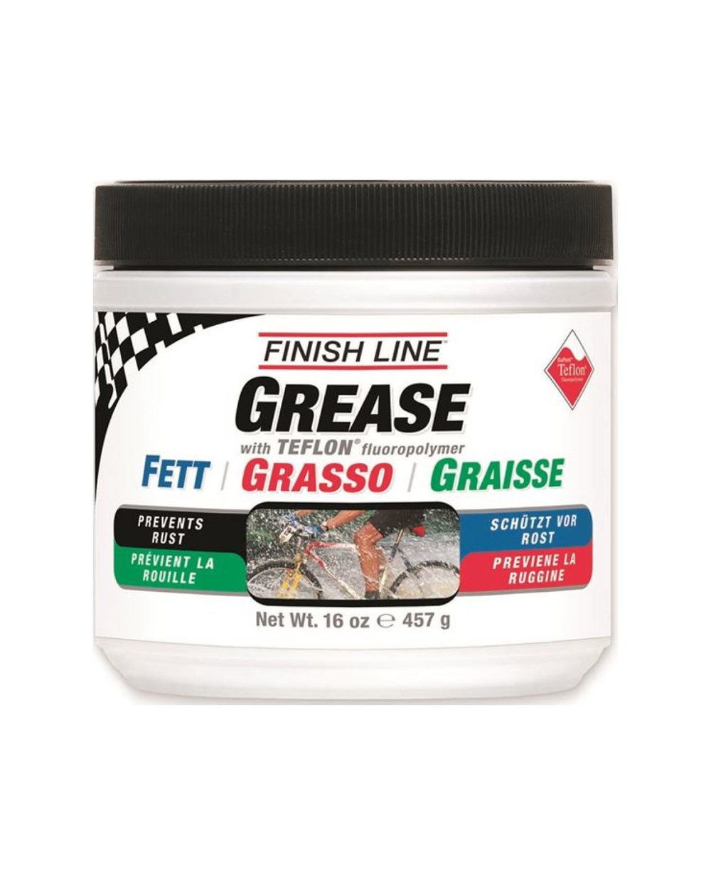 Ta zelo spolzek vazelin je namenjen za ležaje in stožce, povezave sedežne opore in okvirja ali za drsne puše na tečajih vzmetenja okvirja. Vsebuje DuPont™ Teflon™ in vodoodbojne polimere. Preprečuje obrabo in deformacijo delov. Primeren za obremenjene glave in osrednje sklope. Posebno zgoščevalo Finish Line preprečuje ločevanje olja, tudi če je popolnoma potopljeno v vodo. Izjemna vzdržljivost sintetičnih olj omogoča uporabo v najzahtevnejših pogojih.