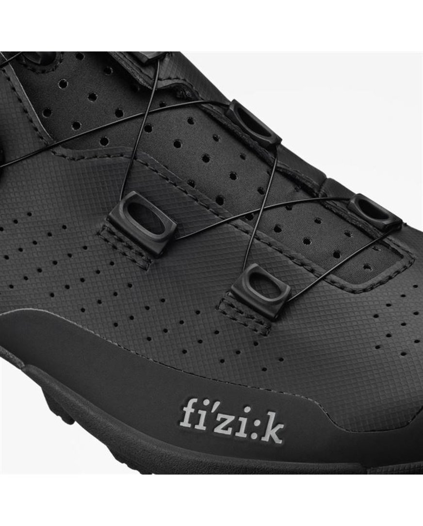 Podplat z indeksom togosti 5 je razširjen na območju pete za večjo stabilnost na neurejenih površinah. Poleg tega je po vsej dolžini gumiran, da vam daje samozavest, kadar koli morate sestopiti s kolesa in prenesti kakšen del kolesa. Torej ni več skrbi zaradi mokrih kamnov in korenin! Sodoben perforiran zgornji del iz trpežnega materiala je opremljen z enim kolescem BOA za popolno snemanje copata.