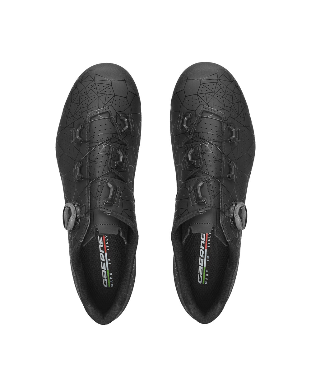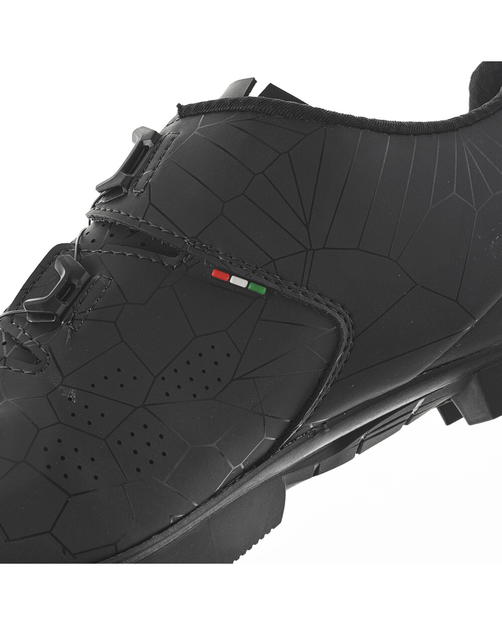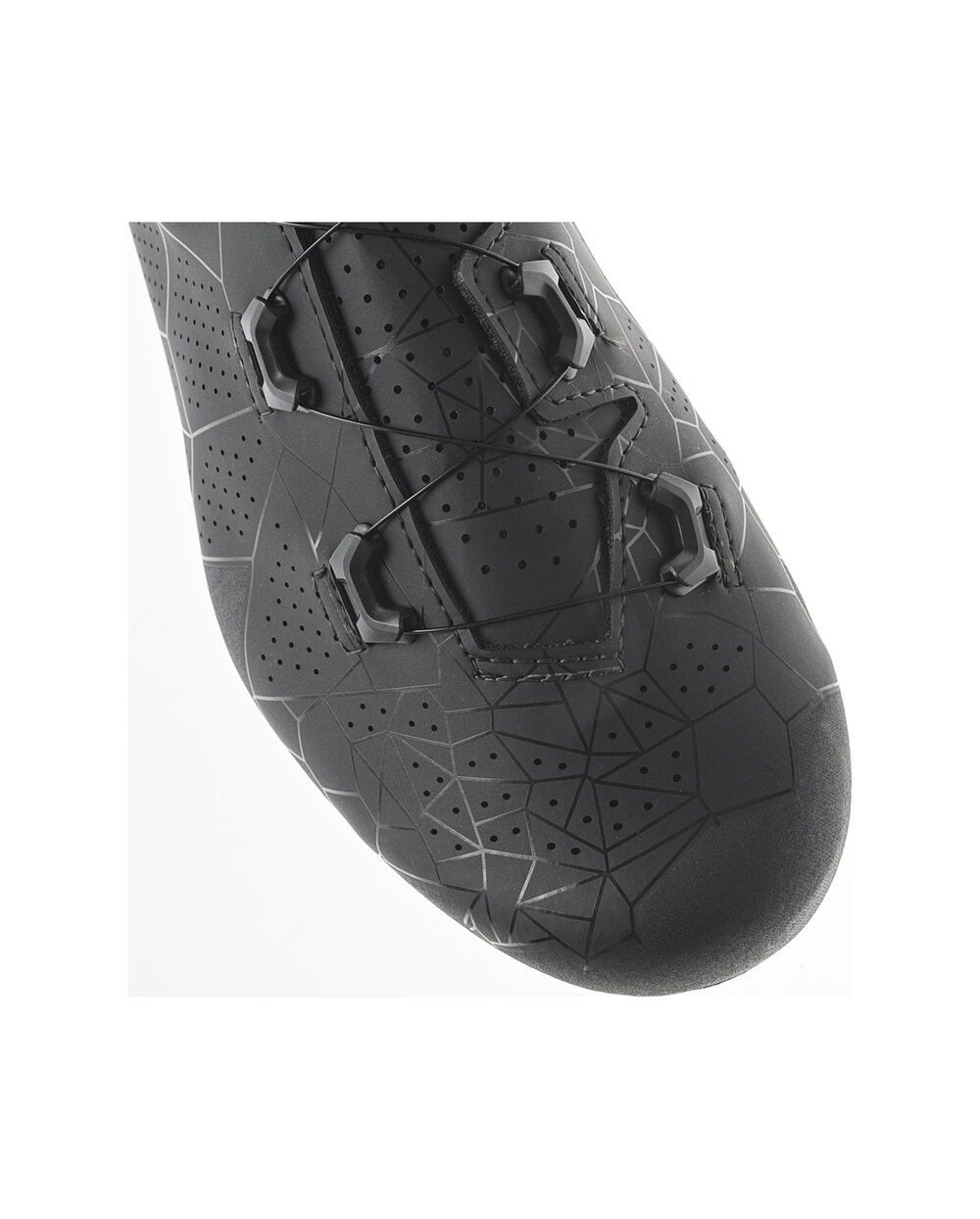 Zgornji del iz mikrovlaken je strateško perforiran z luknjami različnih velikosti, ki so premišljeno razporejene po celotnem čevlju za optimizacijo zračnosti in prezračevanja, hkrati pa ohranjajo noge hladne in suhe med vašo vožnjo. Notranji del čevlja je dopolnjen z mrežico, ki stopalu zagotavlja trajno oporo in povečuje njegovo stabilnost.