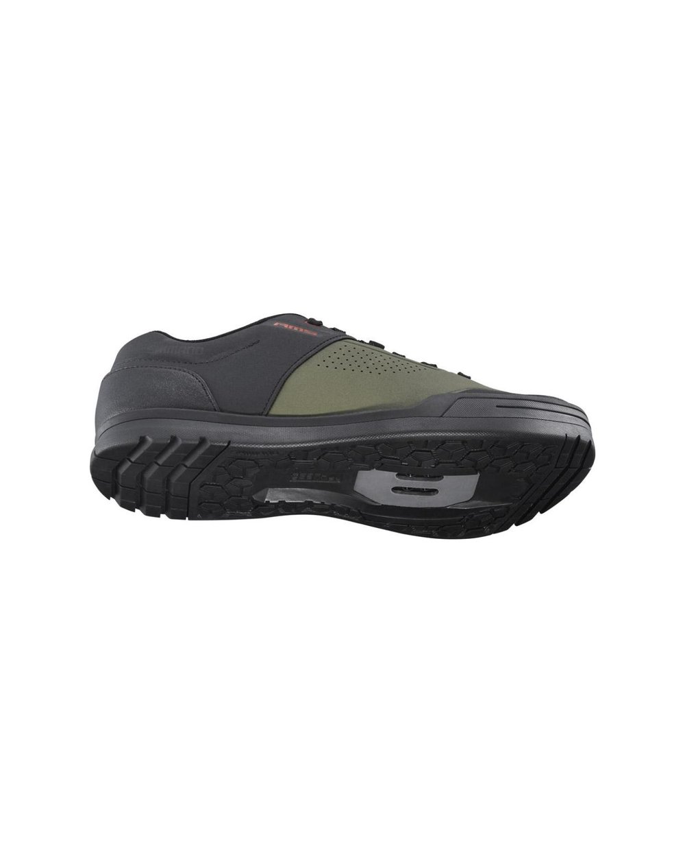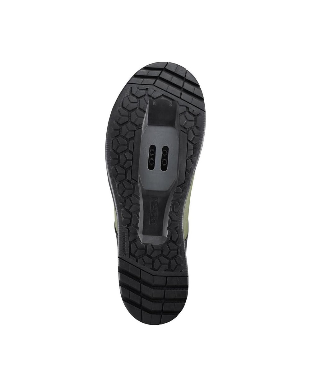 Gumijast podplat Shimano z izrazitejšo tekalno plastjo na območju pete in prstov za lažjo hojo.