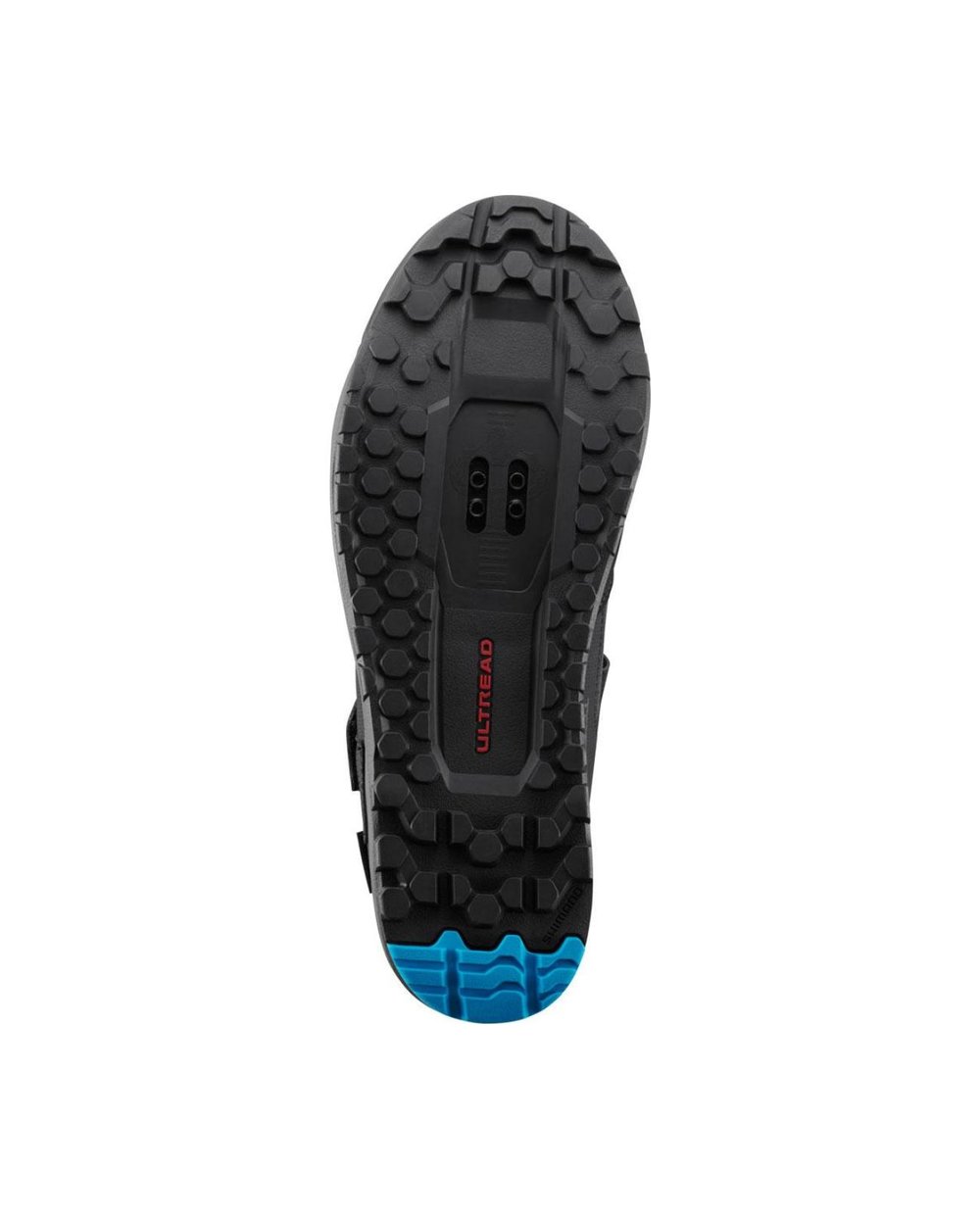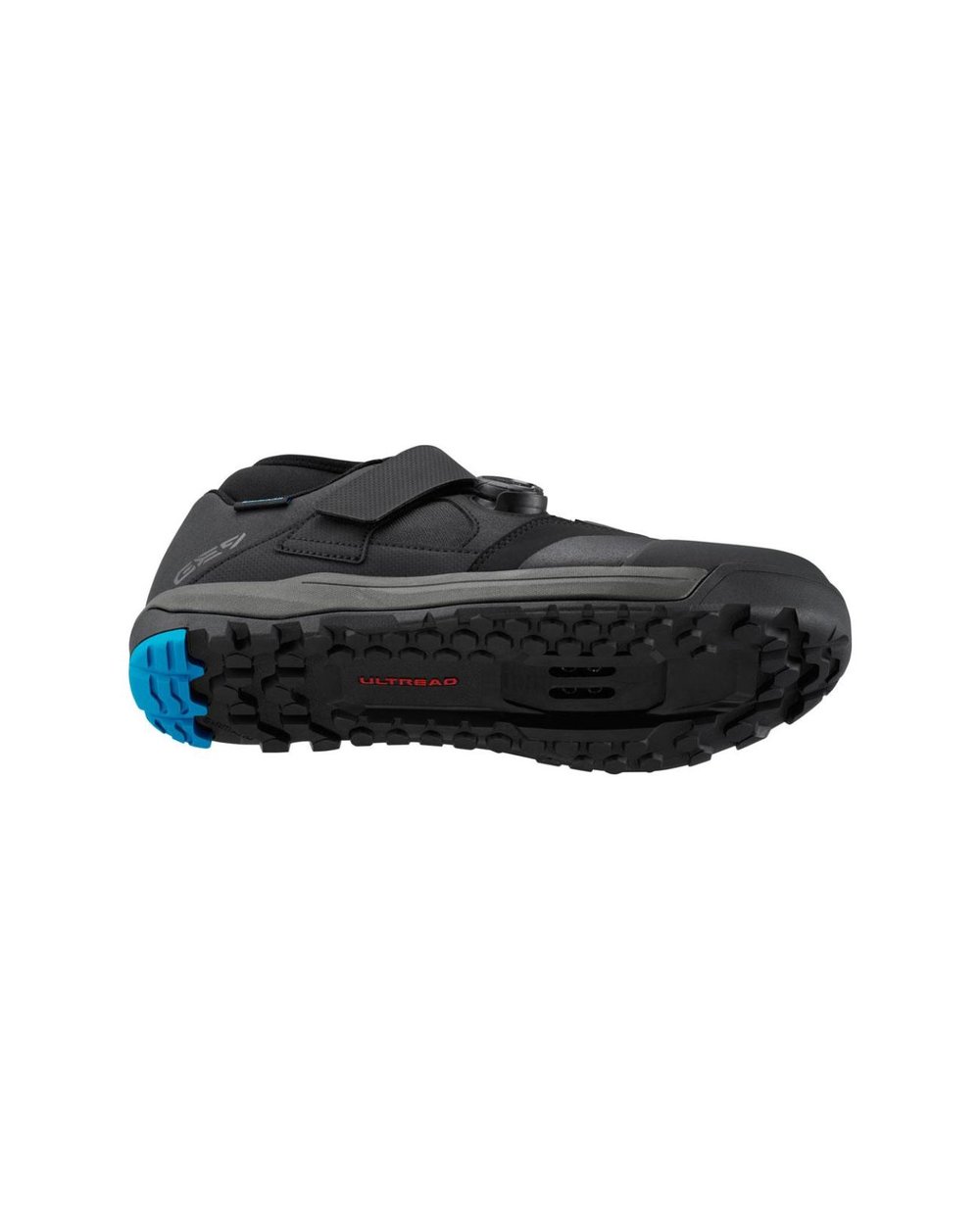 Gumena zmes in vzorec tekalne plasti podplata Shimano ULTREAD GE, optimizirana za enduro, zagotavljata zanesljivo pedaliranje in oprijem na kolesu in zunaj njega.