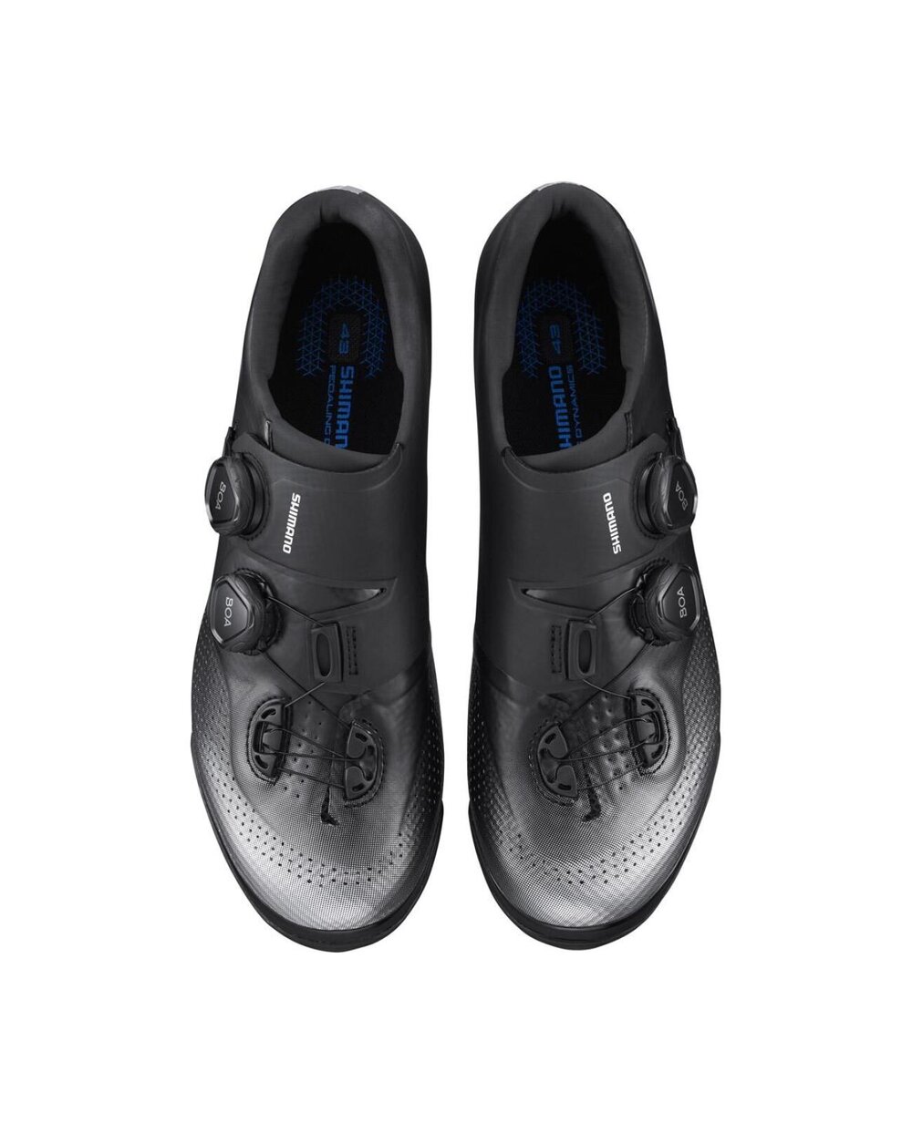 Tekmovalni copati XC z DNK S-PHYRE. Lahek gumijast podplat Shimano ULTREAD XC zagotavlja popoln oprijem. Konstrukcija zgornjega dela zmanjšuje prekrivanje materialov in zagotavlja popolno prileganje. Zamenljive špice omogočajo, da kolesar prilagodi trenirko svojemu slogu vožnje in trenutnim razmeram na progi. Izjemno trpežen, lahek in s karbonom ojačan vmesni podplat. Prožen zgornji del iz kombinacije perforiranega sintetičnega usnja in mrežice/TPU zagotavlja dodatno udobje. Dvojni neodvisni sistem BOA L6 omogoča dovolj natančno prilagoditev prileganja stopala v copatu. SPD. Teža od 640 g (št. 42). Priporočamo, da izmerite stopalo in naročite velikost v skladu s tabelo velikosti - največkrat je treba naročiti številko večjo, kot jo običajno nosite. Copati so na voljo tudi s širšim kopitom - velikost je označena s črko E.