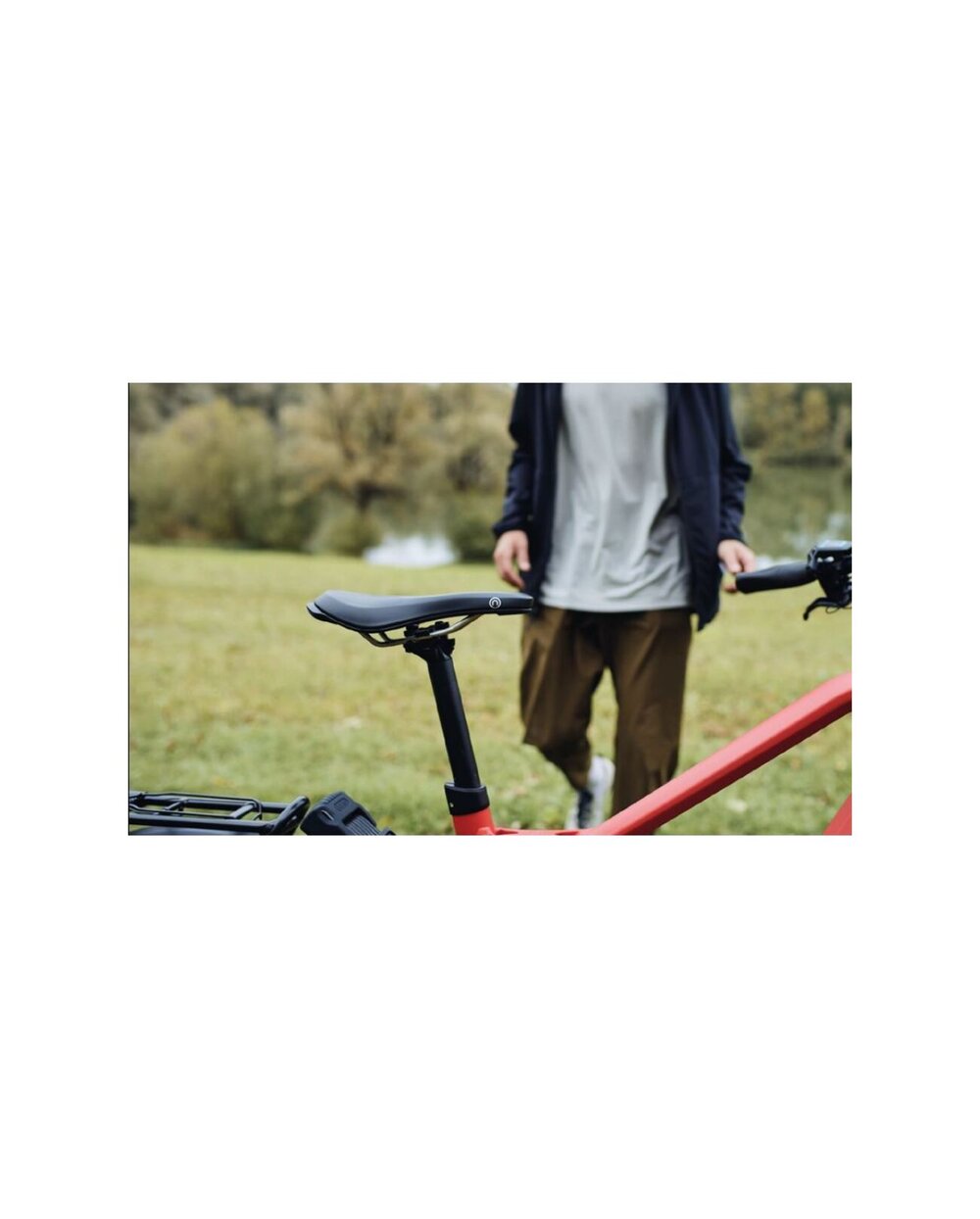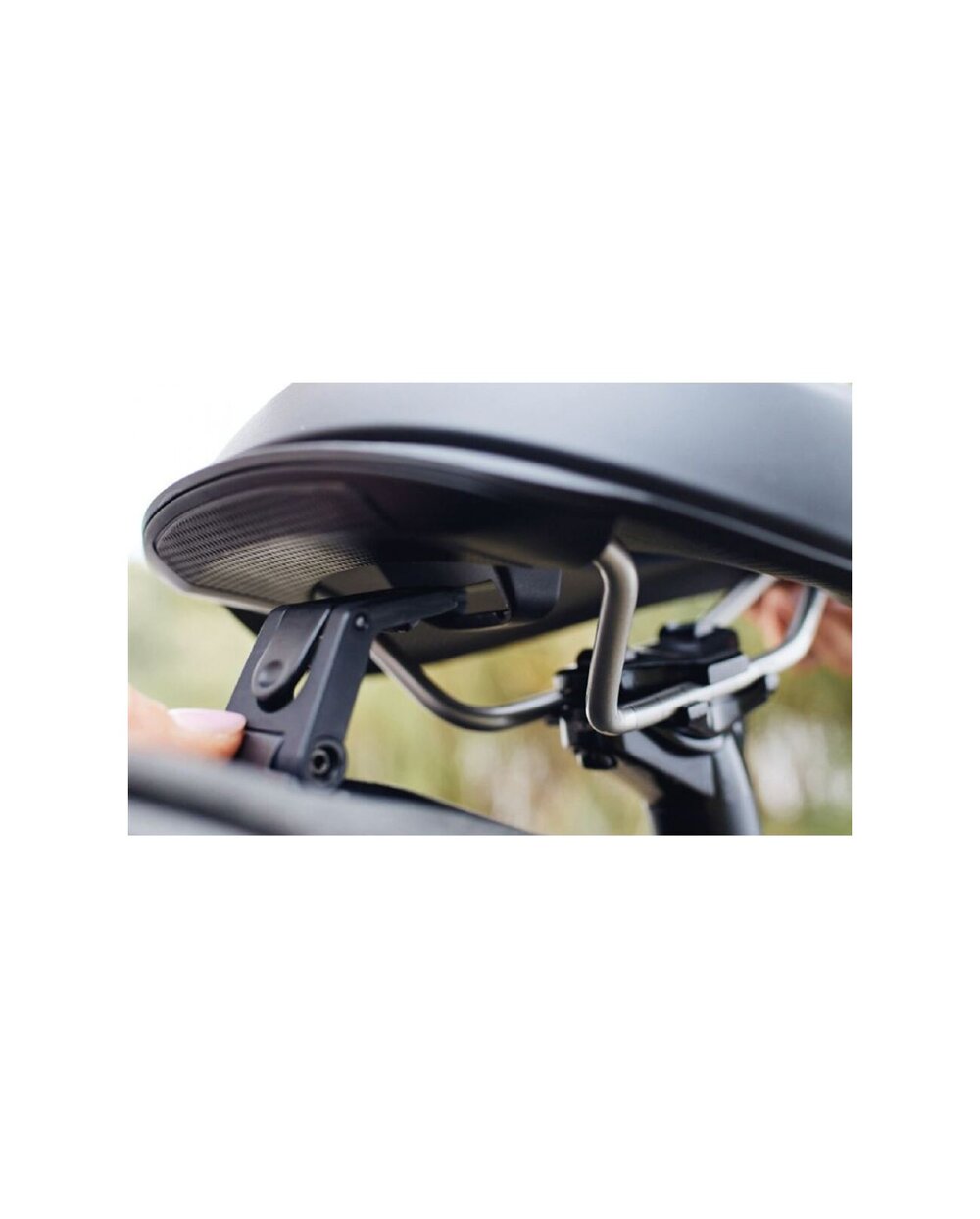 Vgrajen sistem sponk: integrirana sponka na zadnji strani sedeža omogoča pritrditev sedežne torbe ali drugih dodatkov.