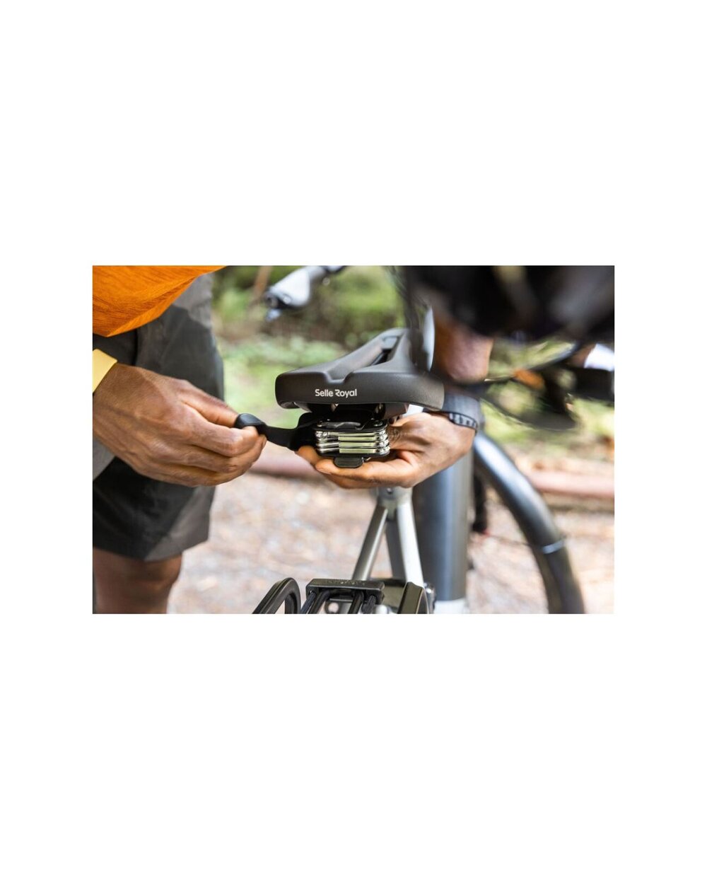 Večnamensko orodje: Vedno bodite pripravljeni na nepričakovane dogodke. To večnamensko orodje se pritrdi na zadnji del sedla Selle Royal, opremljenega z integriranim sistemom vpenjanja (ICS), da ga boste imeli pri roki za hitre prilagoditve in popravila na svojih potovanjih. Kompaktno orodje z 9 funkcijami je zaščiteno z gumijastim ohišjem proti udarcem za dolgoletno zanesljivo uporabo.