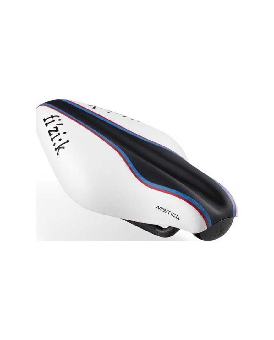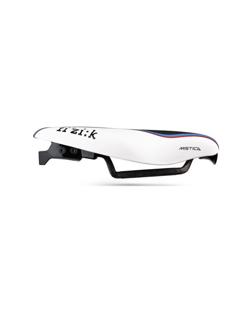Vse izkušnje, ki jih je fi'zi:k pridobil kot največji sponzor sedel v profesionalnem pelotonu, so bile prenesene v razvoj novega triatlonskega sedla Transiro Mistica. Oblika brez nosu ponuja prostor za največjo zmogljivost in udobje v aero položaju. Ročaji so dolgi in nudijo velik razpon nastavitev naprej, da dosežete največji aerodinamični položaj na kolesu. Vzdolžni žleb omogoča boljšo porazdelitev teže na sedlu, nedrseči material pa vam omogoča, da se pravilno naslonite na pedala.