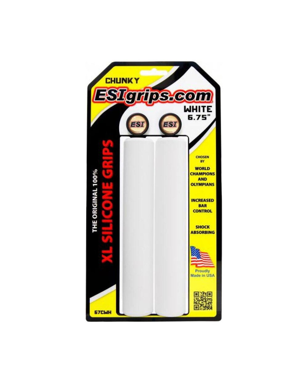 ESIgrips Chunky 100% silikonski ročaji v različici XL - podaljšani na 6,75"/17 cm. ESIgrips se prilegajo vaši roki in zelo dobro absorbirajo udarce. Zagotavljajo enak oprijem v suhih in mokrih razmerah. Ne drsijo, vendar se ne prijemajo. Zmanjšujejo otrplost rok in utrujenost rok.   Odporni na UV-žarke, ne spreminjajo barve in oblike.