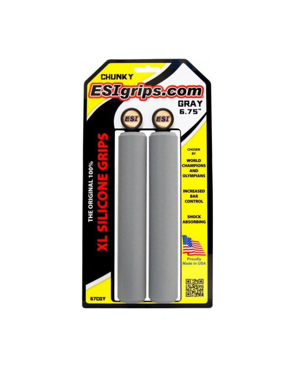 ESIgrips Chunky 100% silikonski ročaji v različici XL - podaljšani na 6,75"/17 cm. ESIgrips se prilegajo vaši roki in zelo dobro absorbirajo udarce. Zagotavljajo enak oprijem v suhih in mokrih razmerah. Ne drsijo, vendar se ne prijemajo. Zmanjšujejo otrplost rok in utrujenost rok.   Odporni na UV-žarke, ne spreminjajo barve in oblike.