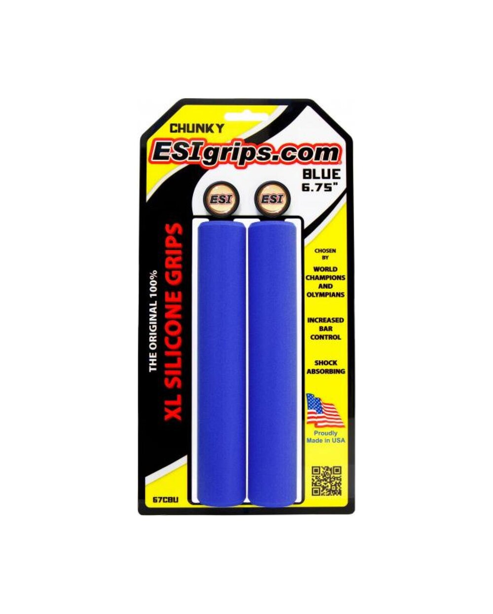 ESIgrips Chunky 100% silikonski ročaji v različici XL - podaljšani na 6,75"/17 cm. ESIgrips se prilegajo vaši roki in zelo dobro absorbirajo udarce. Zagotavljajo enak oprijem v suhih in mokrih razmerah. Ne drsijo, vendar se ne prijemajo. Zmanjšujejo otrplost rok in utrujenost rok.   Odporni na UV-žarke, ne spreminjajo barve in oblike.