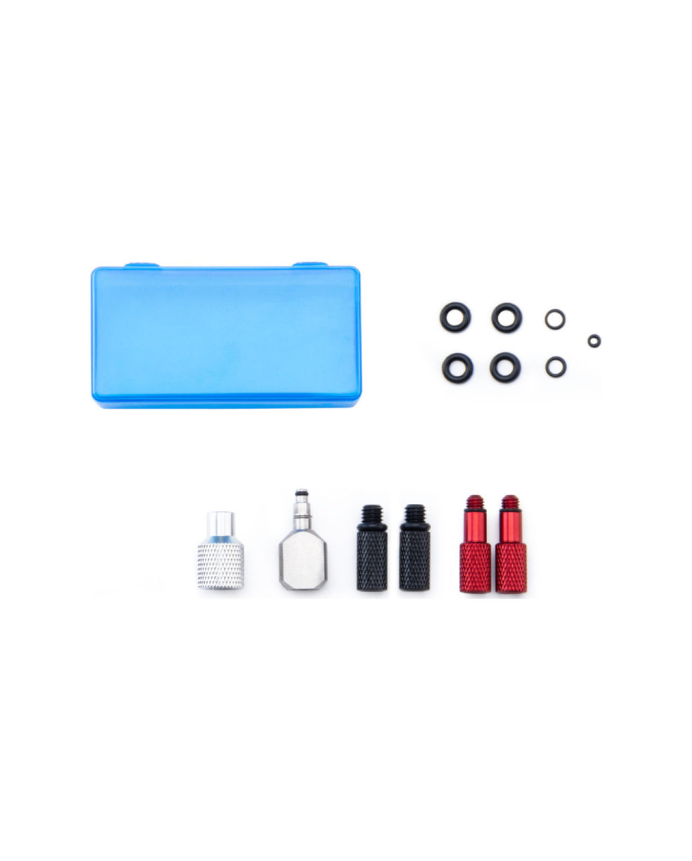 Vse v plastičnem kovčku za prenašanje z dimenzijami 80x210x275 mm. Komplet ne vključuje zavorne tekočine. NE MORE BITI UPORABLJENI ZA BOMBE Z MINERALNIM OLJEM.