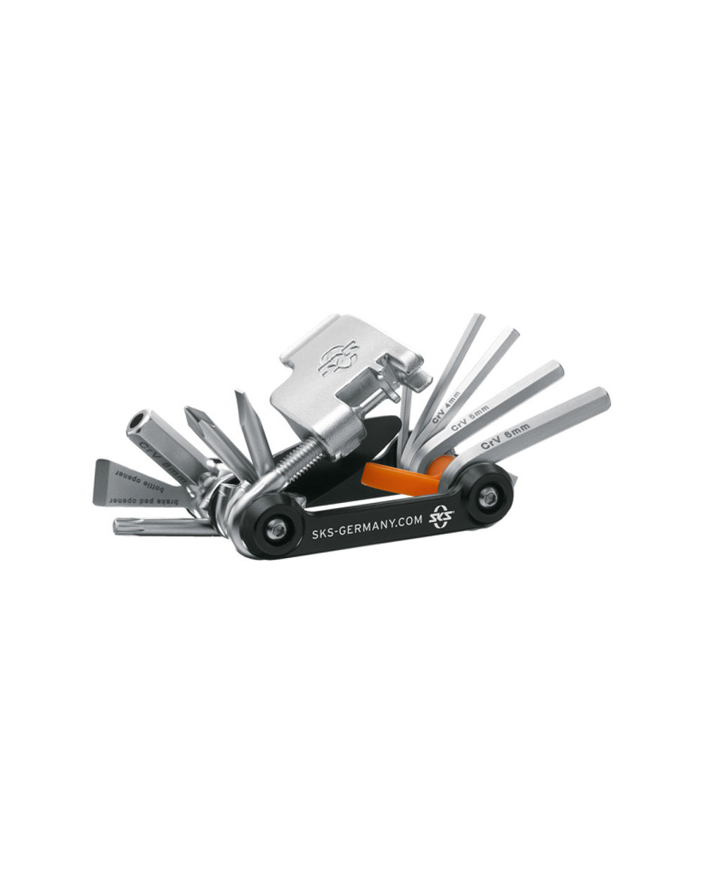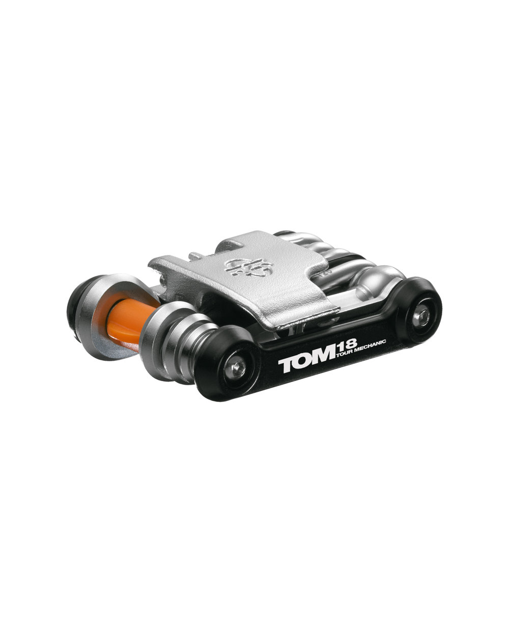 TOM 18 je 18-funkcijsko orodje z zakovičnikom, centrirnim ključem in odpiračem palic. Priložen je tudi priročen kovček z logotipom