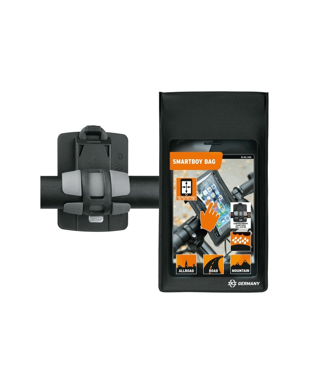 Vodoodporno stojalo za pametne telefone in GPS.Maksimalna velikost telefona: 155x90x9 mm .