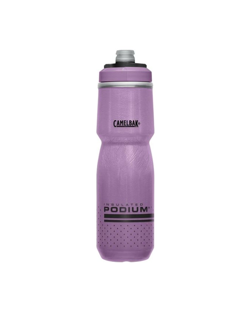 Izolirane steklenice CamelBak Podium Chill ohranjajo temperaturo pijače 2-krat dlje kot običajne steklenice. Izdelane so iz polipropilena brez vsebnosti BPA, BPS in BPF s tehnologijo Hydroguard, ki zagotavlja pristen okus pijače brez plastičnega priokusa. Zaradi patentiranega samozapiralnega ustnika Jet Valve voda ne kaplja iz steklenice. Poleg tega je opremljena s polnim pokrovčkom z zasukom za prenašanje polnih steklenic. Pokrovček in ustnik je enostavno razstaviti in očistiti. Zaradi popolne oblike je steklenico Podium Chill enostavno držati na kolesu, enostavno jo je stisniti in nikoli je ne boste izgubili iz košare. Prostornina 0,71 l