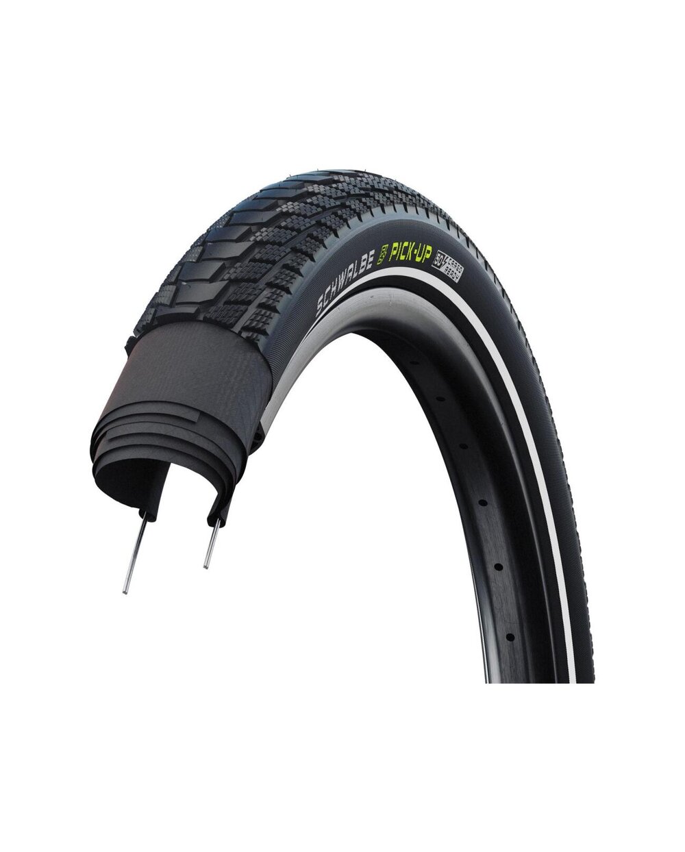 PICK UP je Schwalbejeva prva prava tovorna pnevmatika. Zaradi izjemno stabilne strukture CarCass postane pnevmatika Schwalbe Pick Up pravi delovni konj, hkrati pa zagotavlja odlično zaščito pred predrtjem. Poleg tega zmes ADDIX E-Compound zagotavlja izjemno dobre vozne lastnosti in oprijem, tudi v 20-palčni različici.