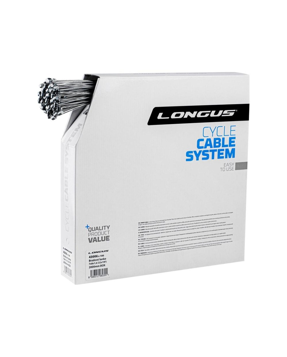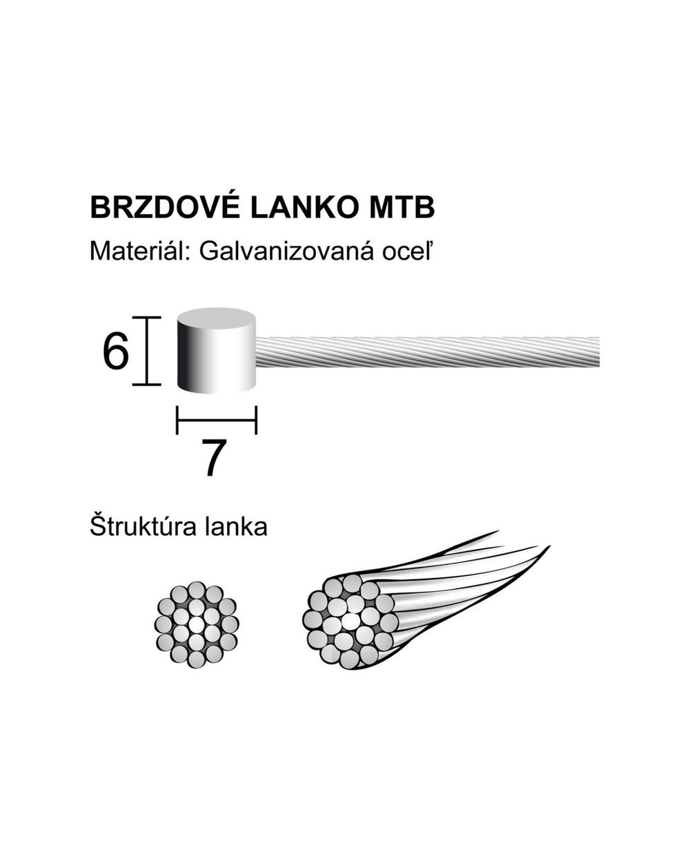 Zavorna vrvica s koncem MTB za gorska kolesa. Povezan je z 19 tankimi pocinkanimi jeklenimi vrvmi. Zaradi visokokakovostnega postopka izdelave kabel zagotavlja odlično natezno trdnost pri zaviranju. Pakiranje s 100 kosi v škatli.