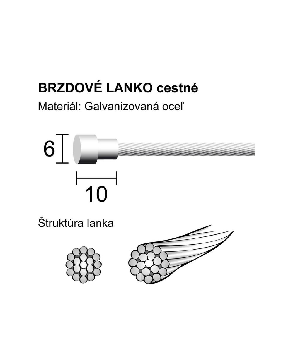 Zavorna vrvica z ROAD zaključkom za cestna kolesa. Povezan je z 19 tankimi pocinkanimi jeklenimi vrvmi. Zaradi visokokakovostnega postopka izdelave kabel zagotavlja odlično natezno trdnost pri zaviranju. Pakiranje s 100 kosi v škatli. Velikost konice: 10 x 6 mm Premer: 1,5 mm Dolžina: 2000 mm