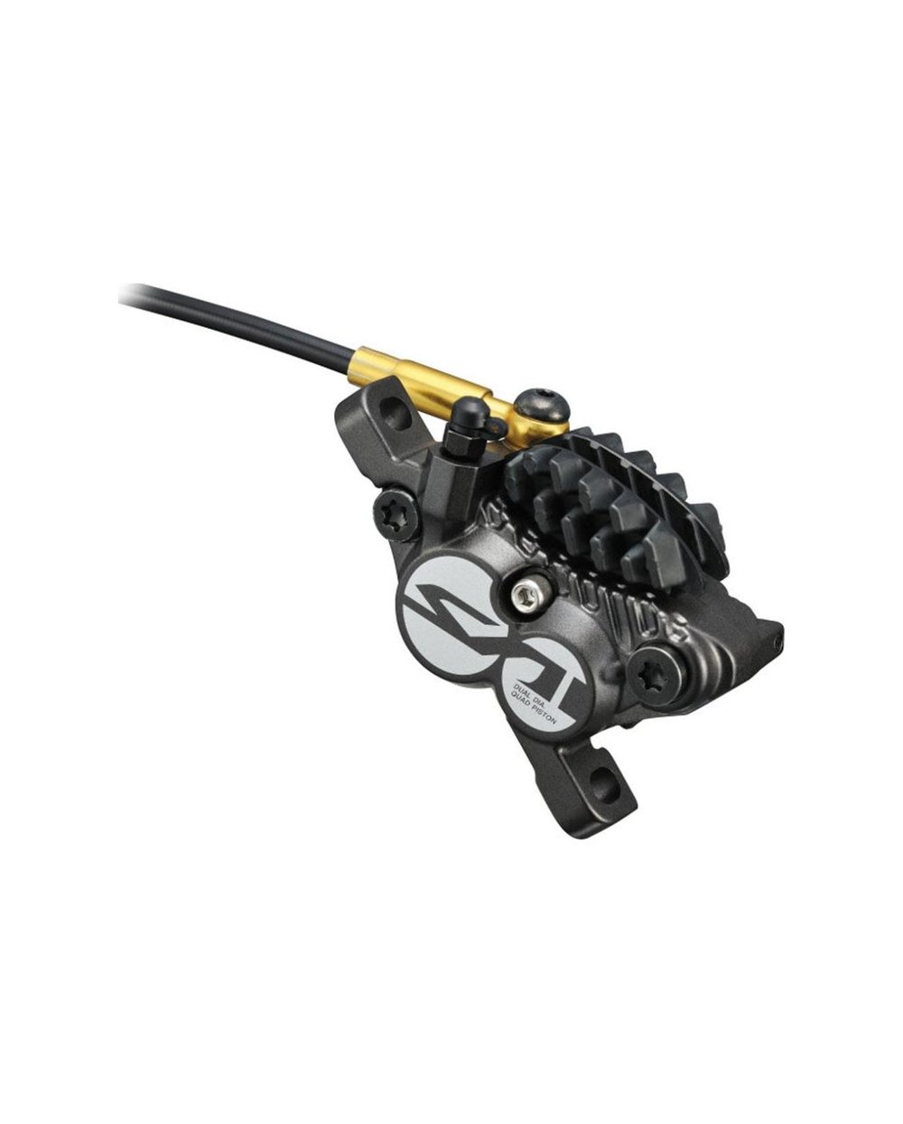 Hidravlični zavorni čeljusti Saint. Zelo učinkovit zavorni mehanizem s 4 keramičnimi bati. Enostavno enosmerno odzračevanje. Združljiv z zavornimi ploščicami Ice Technologies. Zavorne ploščice H03C