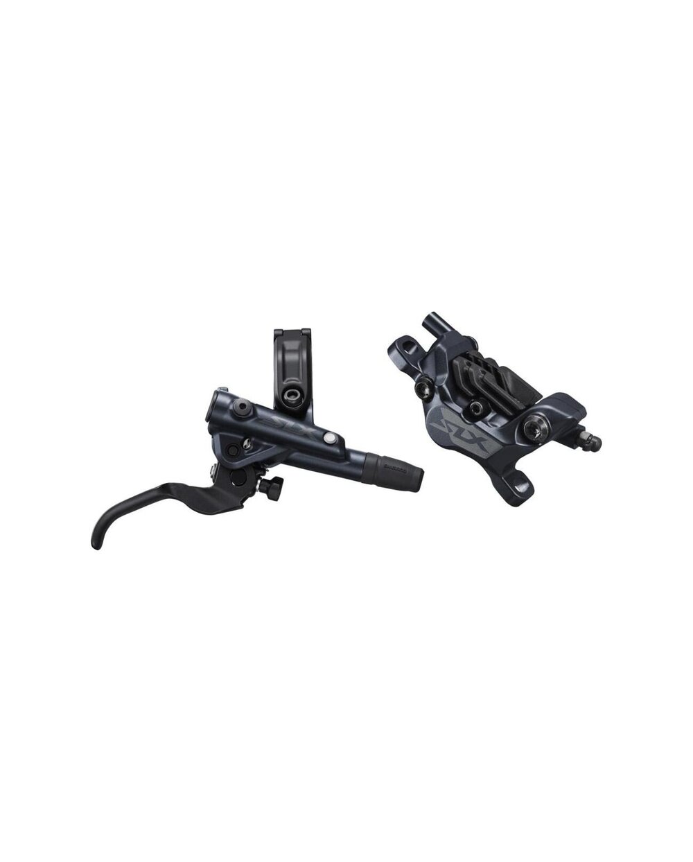 Hidravlična kolutna zavora SLX M7100, ki jo sestavljajo ročica M7100, zatisni mehanizem M7120 (4 batki) in cev BH90. Zavore so napolnjene z mineralnim oljem in prezračevane. Ovratnik ročice je združljiv z namestitvijo prestavnih ročic z nosilcem I-Spec EV. Zavorne ploščice N03A.