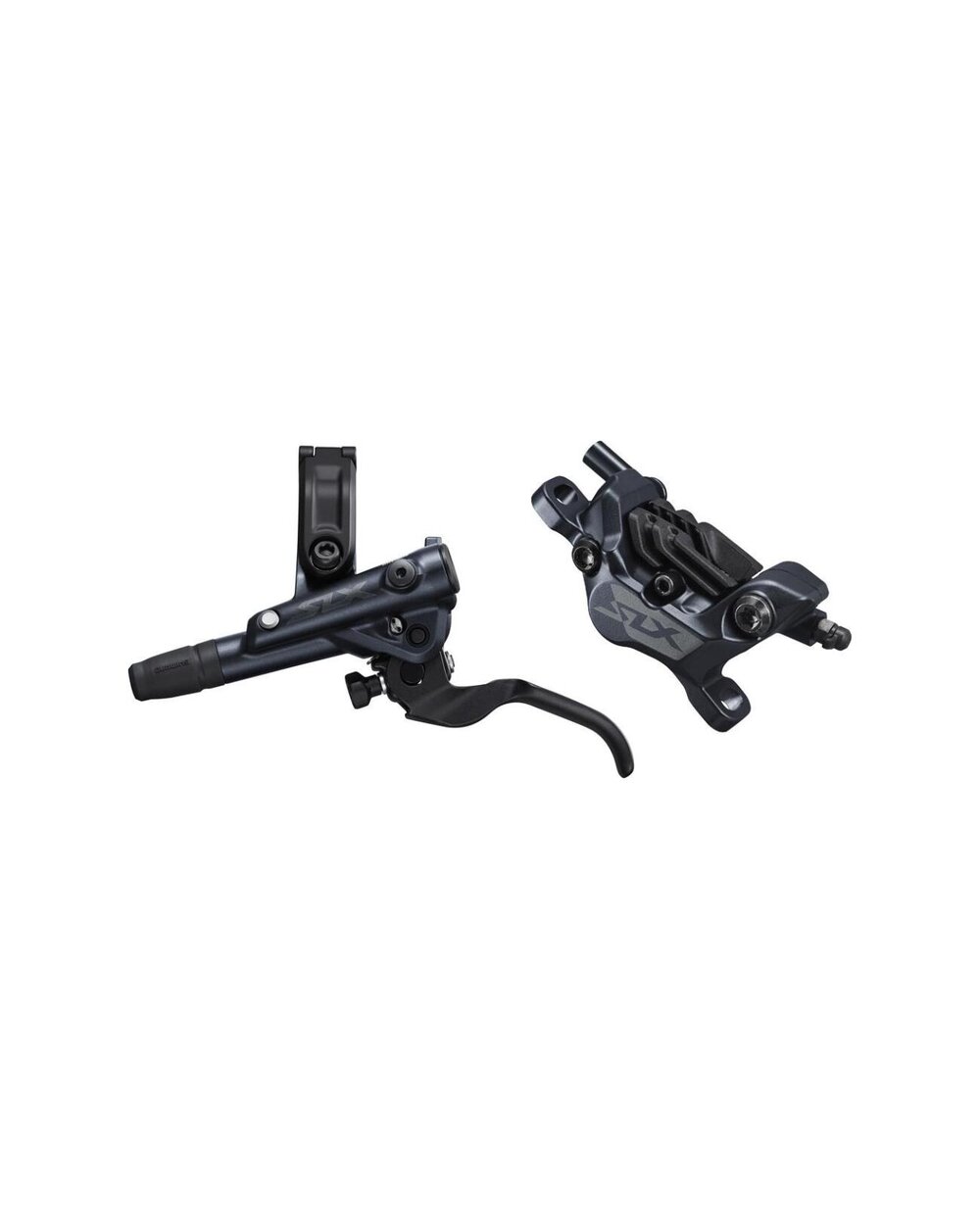 Hidravlična kolutna zavora SLX M7100, ki jo sestavljajo ročica M7100, čeljusti M71020 (4 bati) in cev BH90. Zavore so napolnjene z mineralnim oljem in prezračevane. Ovratnik ročice je združljiv z namestitvijo prestavnih ročic z nosilcem I-Spec EV. Zavorne ploščice N03S.
