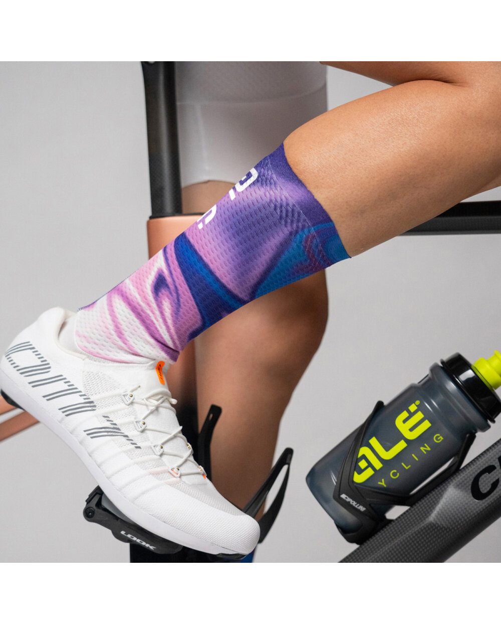 Aerodinamične nogavice SMOOTHIE so odlična izbira za doseganje najboljšega časa. Njen zgornji del je visok 18 cm in je izdelan iz Aero Cell materiala, ki s svojo heksagonalno strukturo pomembno prispeva k minimalnemu zračnemu uporu nogavic. Zaključek roba je Raw Cut s stabilizacijskim sistemom Grip Dots, ki ohranja nogavice vedno v istem položaju.