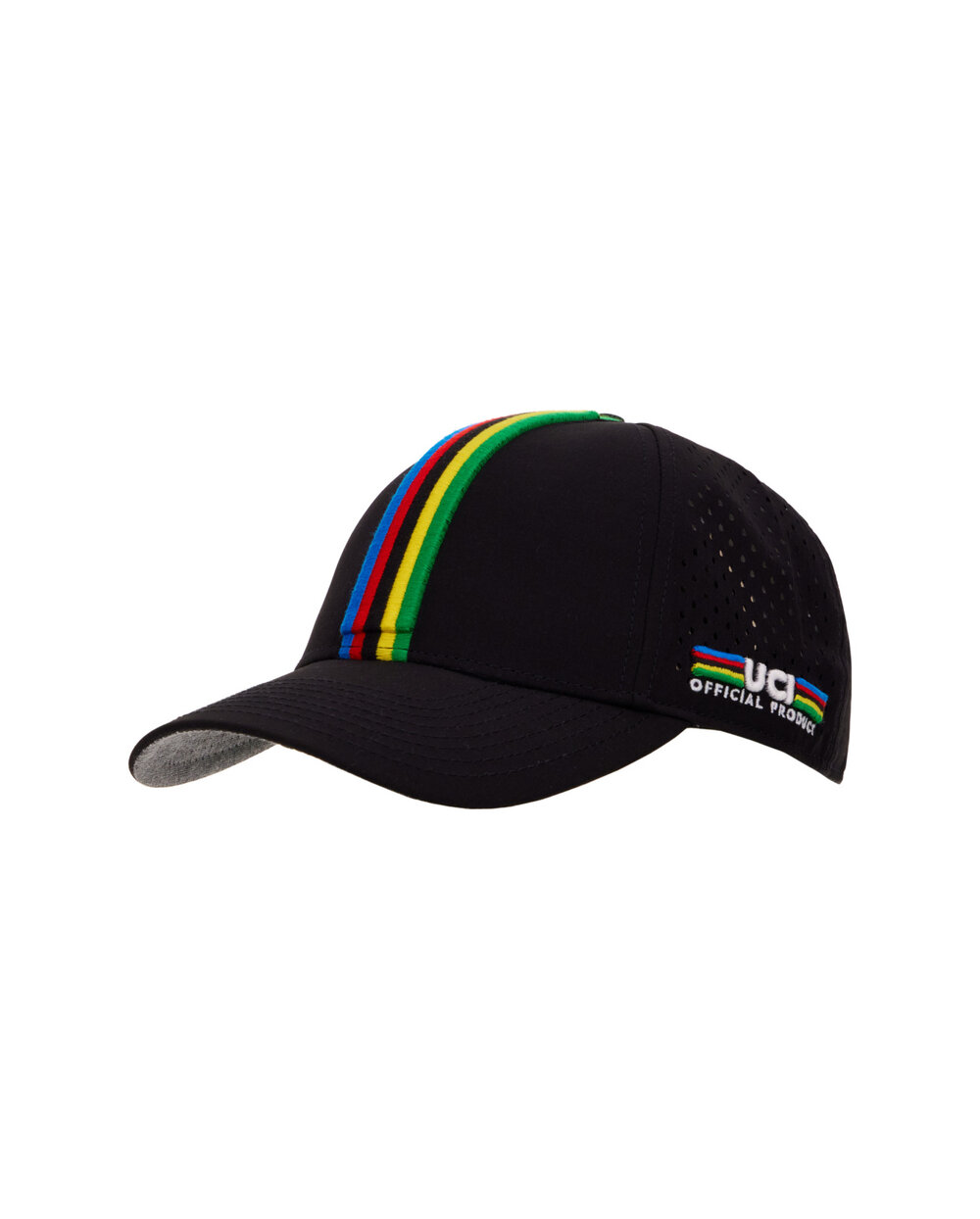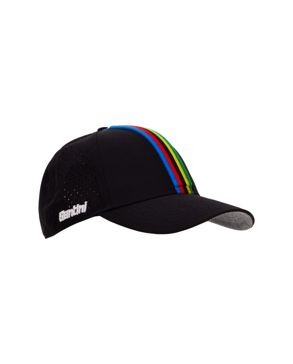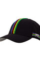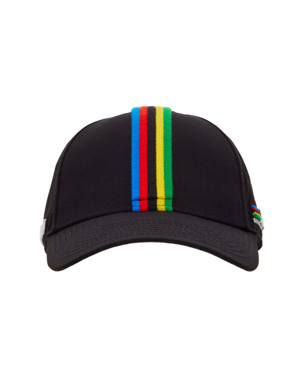 Baseball kapa (z ukrivljenim krilom) z izvezenim vzorcem mavričnih črt svetovnega prvenstva UCI spredaj in logotipom Santini x UCI na strani. Kapa ima na zadnji strani mikro perforirano mrežico, uradni dizajn, navdihnjen z UCI Rainbow Stripes, pa je izdelan s 3D vezenino. Nastavljiva za udobno prileganje. Nosite jo kot priložnostni dodatek in pokažite svojo strast do svetovnega prvenstva UCI.