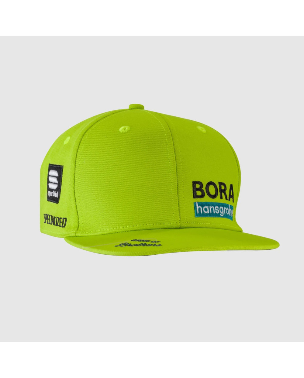 Čepica ekipe BORA-Hansgrohe, ki jo nosijo mehaniki in ostalo osebje na potovanjih ter športniki v trenutkih počitka in na najvišji stopnički zmagovalnega odra.