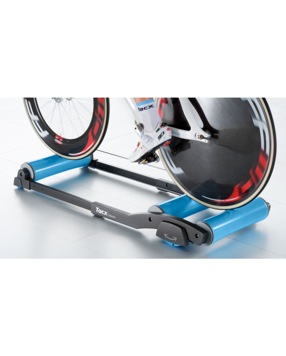 Patentiran sistem nihanja: TACX Galaxia uporablja patentiran sistem nihanja, ki omogoča gladko premikanje valjev naprej in nazaj. Med spremembo tempa ali prehodom v sprint (stoje) ta sistem pomaga ublažiti gibanje in preprečiti padce.ss .