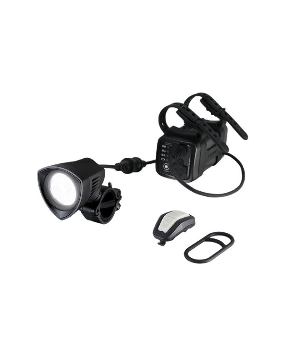 Svetilka je opremljena z zmogljivo baterijo in izjemno lahkim daljinskim upravljalnikom z osvetljenimi gumbi.