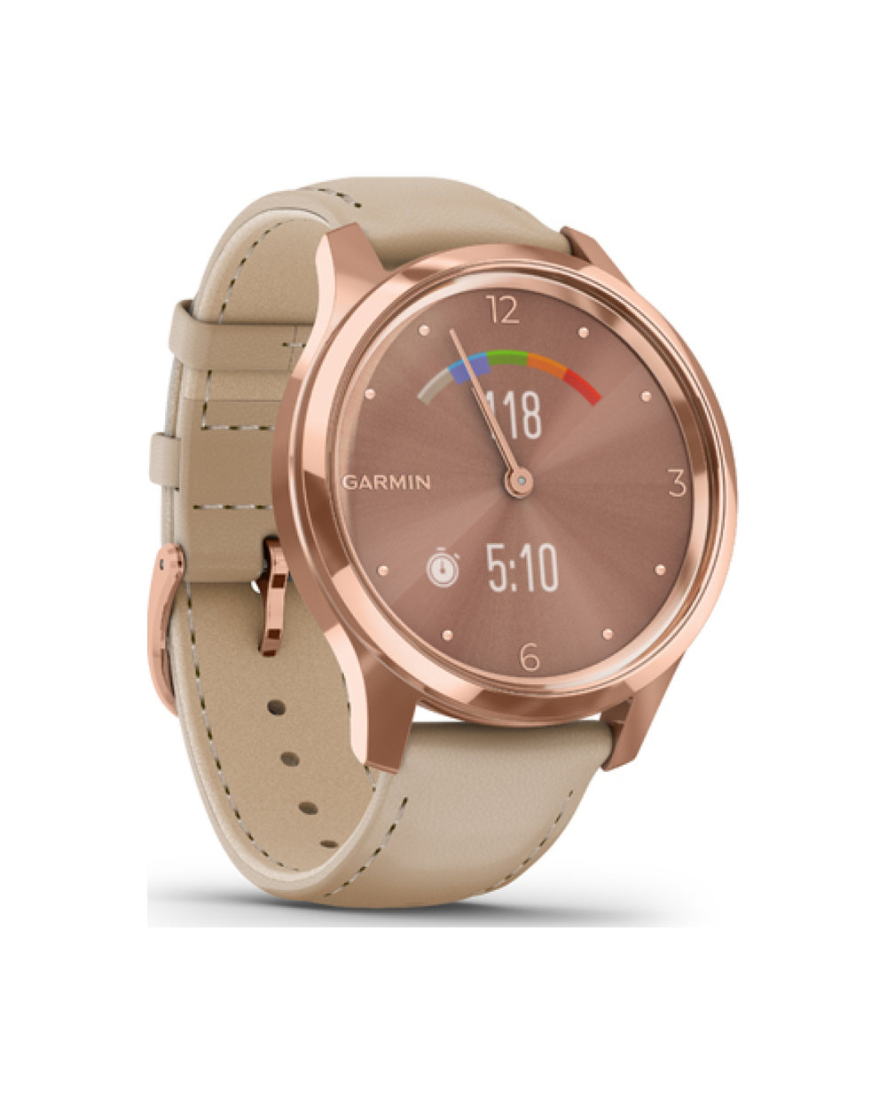 Ta hibridna pametna ura združuje tradicionalni slog analogne ure s pametnimi funkcijami. Ko prejmete besedilno sporočilo ali drugo obvestilo, se prikaže neposredno na vašem zapestju. Preprosto potegnite prst po zaslonu in prave urne kazalce se premaknejo, da se prikaže skriti zaslon.