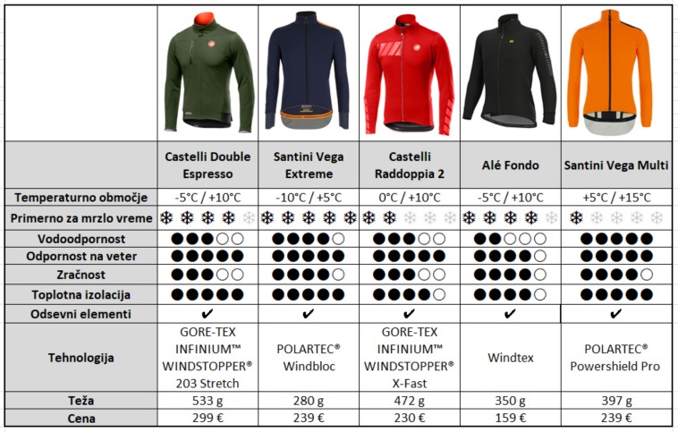 Na začetek naj vam iskreno povem, da takšna zimska kolesarska jakna, primerna za vse vremenske razmere ne obstaja. Zato je pri nakupu jakne potrebno jasno določiti, na katerem kolesu se boste vozili (cestno kolo ali MTB), in predvsem dolžino potovanj in vremenu v katerem se boste vozili- na primer, ali se boste vozili tudi v dežju in v mrazu pod ničlo.