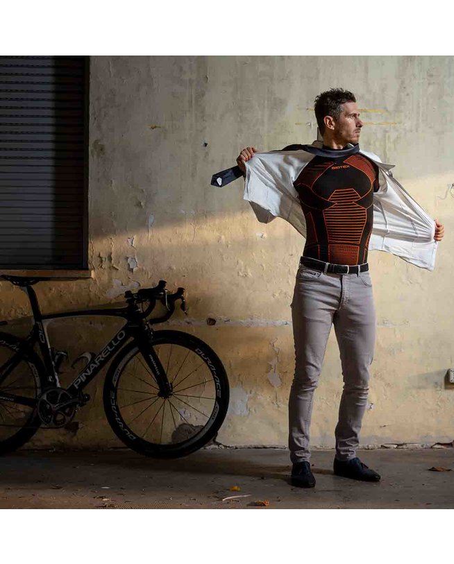 Kolesarska majica z dolgimi rokavi Biotex ICEBREAK črna/oranžna