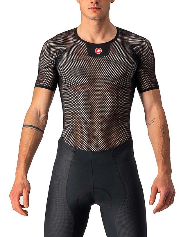 To je CASTELLIjev osnovni sloj za najtoplejše pogoje. Mreža je odprta za ustvarjanje prostora na koži za izhlapevanje znoja. Vsebnost 10% elastena je zelo raztegljiva in pomaga pri zadrževanju vlage, tako da vedno dobite izhlapevalno hlajenje.