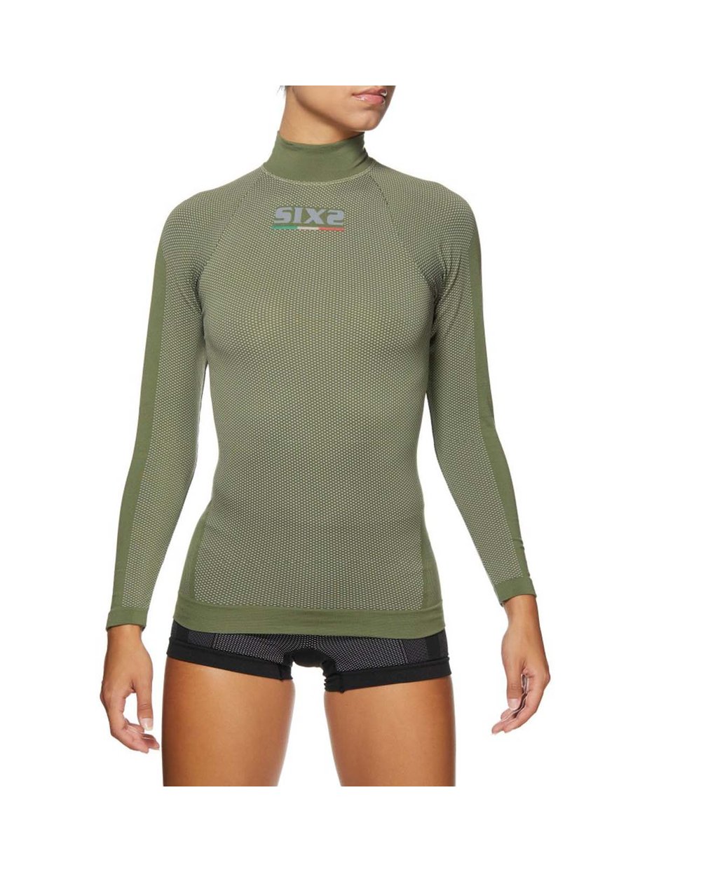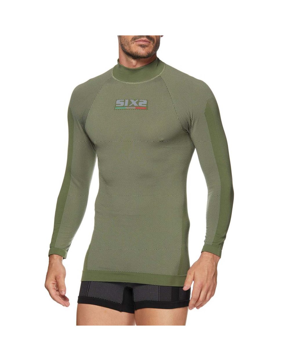 SIXS Carbon spodnje perilo majica z dolgimi rokavi, ki je dihljiva in termoregulira v vseh vremenskih razmerah. Dolgi rokav objame vsak del roke, da ohrani kožo svežo in leži med kožo in vrhnjim oblačilom. Prav tako rahlo ščiti pred hladnim prepihom, če je oblečeno oblačilo s kratkimi rokavi. Nazadnje, namizni ovratnik ovije grlo pred nenadnimi temperaturnimi spremembami in hladnimi prepihi.