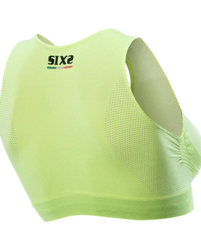 Druga generacija nedrčkov SIXS: ta športni modrček je bil izboljšan in ojačan, da bi zagotovil še več udobja in pravilne termoregulacije za vse športnice. Zahvaljujoč tehnologiji SIXS original carbon underwear®, ki kožo ščiti pred prekomernim potenjem, ne boste več doživljali nenadnih prehladov, saj vam bo iz kože odstranjena mraz in vlaga; tudi v najbolj vročih dneh bo vaša koža brez vlage.