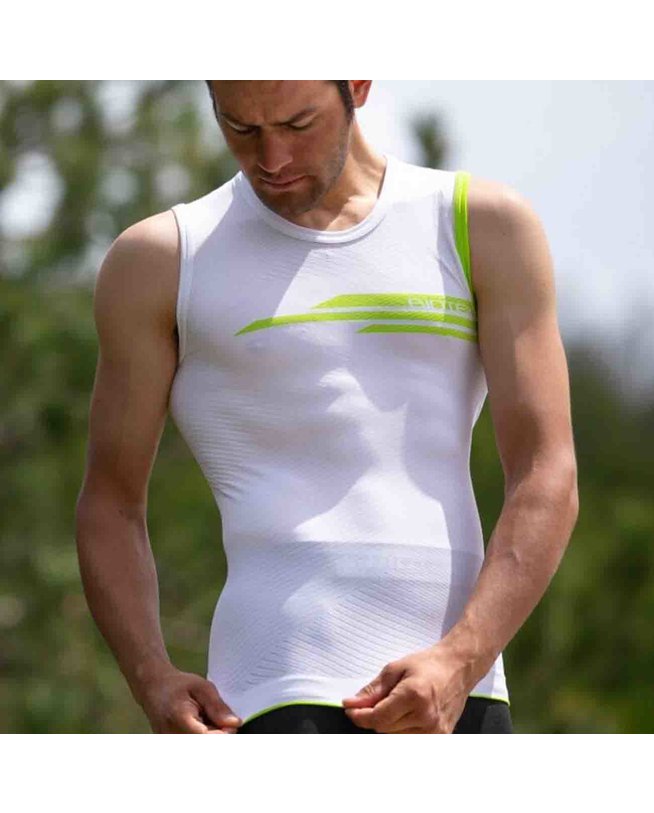 Ta majica brez rokavov potegne znoj in hladi vaše telo med vadbo zahvaljujoč mikrokanalnemu sistemu. V predelu prsi ima zaščitni pas, ki še hitreje absorbira znoj.