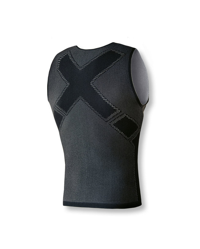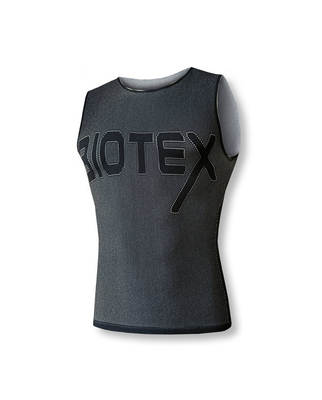 Majica brez rokavov iz polipropilenske tkanine, izredno lahka in mehka na otip. Tkanina je pletena in brezšivna: telo nežno ovije in ne omejuje pri gibanju. Prepustna in lahka, je primerna tako za športe na prostem, ko se temperature dvignejo, kot tudi za športe v zaprtih prostorih (npr. v telovadnici). Oblikovana pa je tako, da se jo lahko nosi z logotipom Biotex na sprednji strani in X na hrbtu ali obratno. To je mogoče zaradi mehke tkanine in posebnega kroja vrate linije in rokavov. Na voljo zgolj v dveh velikostih, zahvaljujoč visoki elastičnosti tkanine.