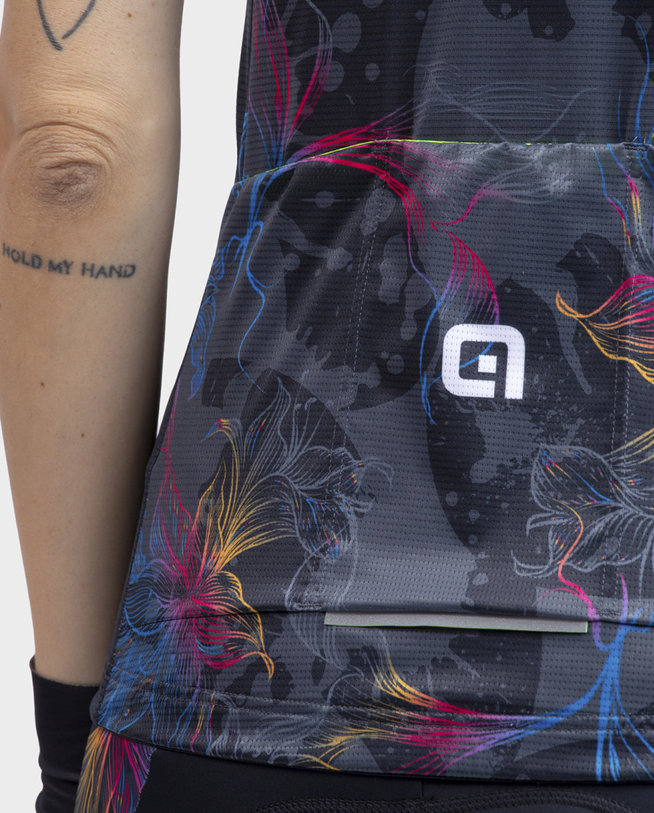 Chios je mesto, kjer se udobje sreča s slogom. Strukturirana tkanina z odprtim prepletom in visoko raztegljivostjo zagotavlja lahkotno gibanje na kolesu, njen drzen potisk pa omogoča, da vaša osebnost zasije, medtem ko počnete to, kar znate najbolje: kolesarite.