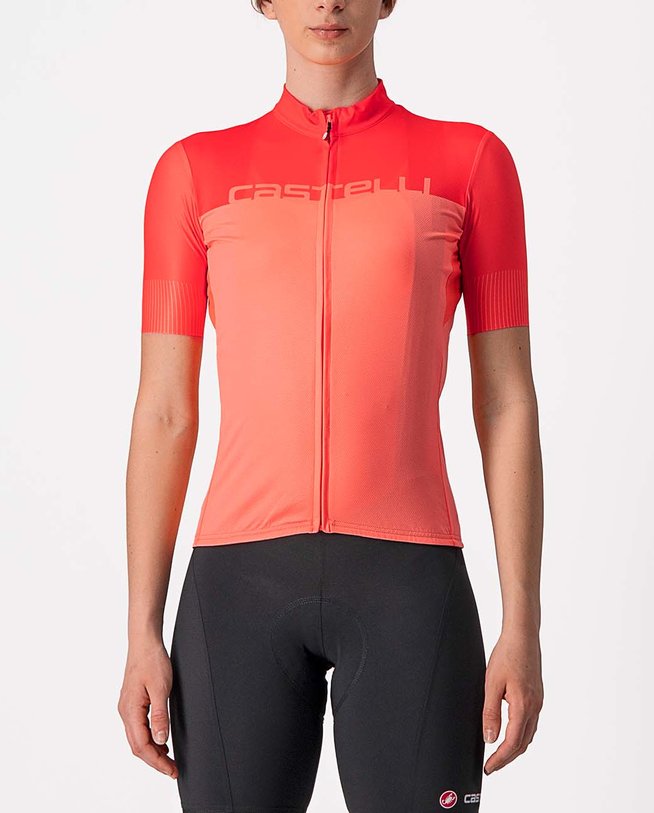 Kolesarski dres s kratkimi rokavi CASTELLI VELOCISSIMA LADY rožnata/oranžna