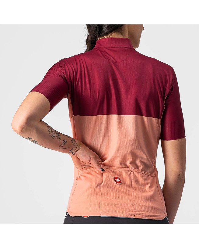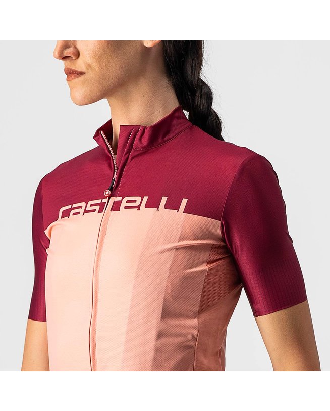 Kolesarski dres s kratkimi rokavi CASTELLI VELOCISSIMA LADY bordo/rožnata
