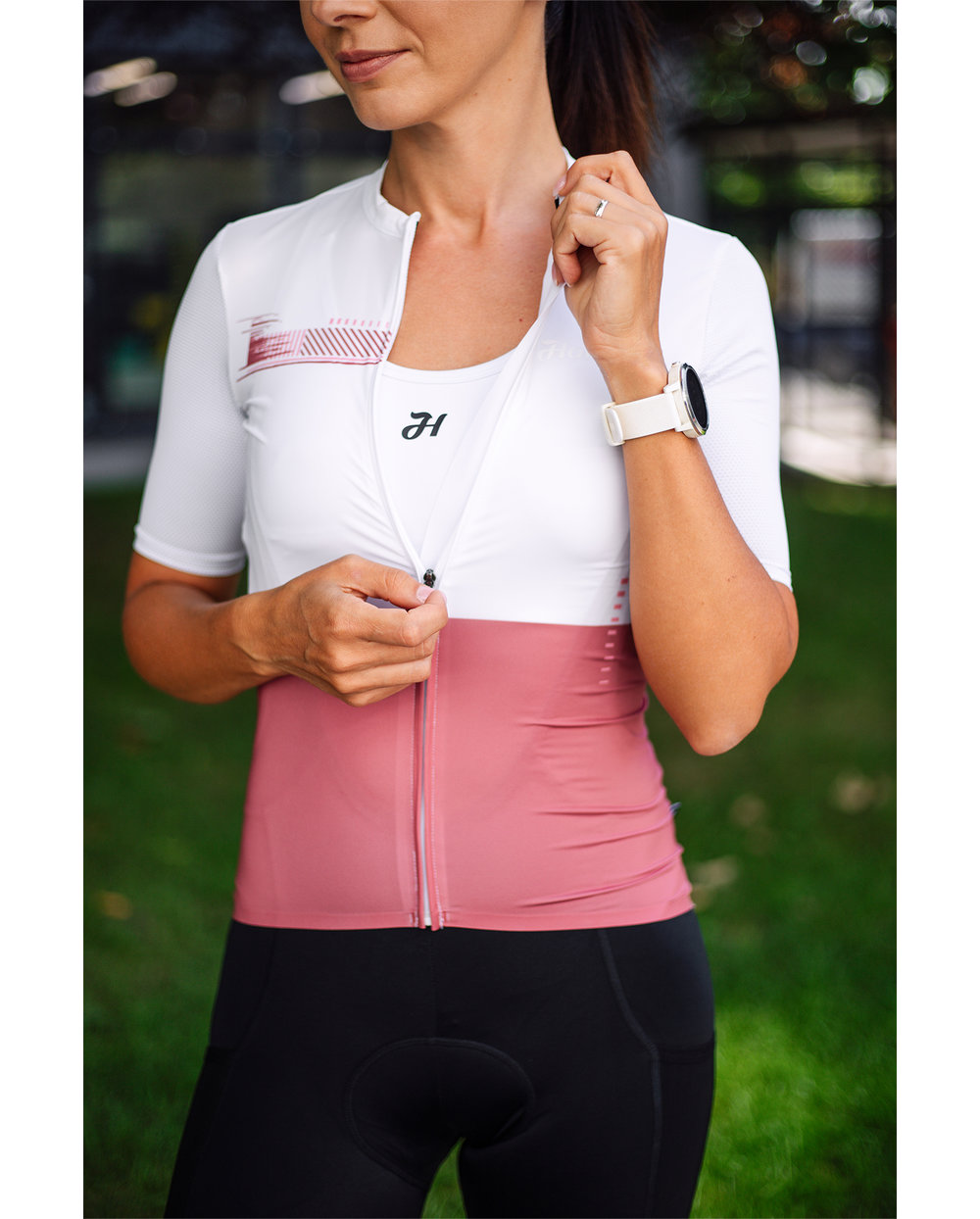 Kolesarski dres s kratkimi rokavi HOLOKOLO VIBES LADY rdeča/bela