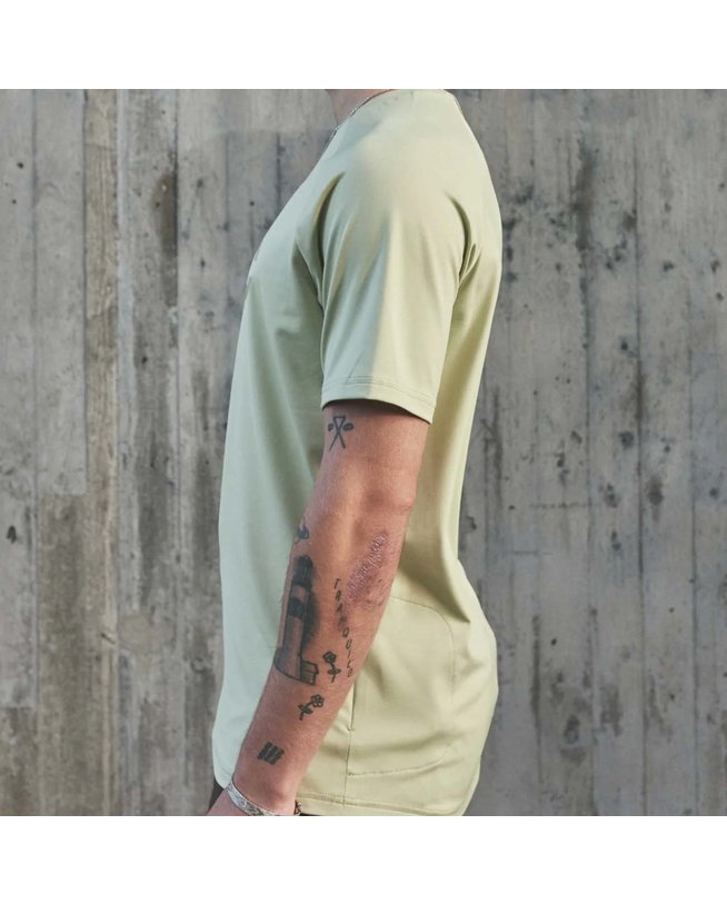 Ekološka izbira za intenzivne vožnje v toplejšem vremenu. Dres je izdelan iz recikliranih materialov in ima izjemne lastnosti odvajanja vlage, zato se boste med naporno vadbo počutili suho in udobno. V tem dresu se boste počutili svobodno in neomejeno zaradi regularnega kroja z raglanovimi rokavi za več svobode pod pazduhami. Pod dresom je dovolj prostora za zaščito hrbta in prsnega koša. Diskreten in varen žep je idealen prostor za shranjevanje kartic ali drugih manjših predmetov.