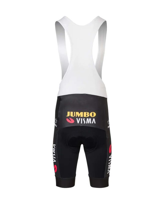 To je uradna replika moških hlač Team Jumbo-Visma. Z enakim kolesarskim vložkom, kot ga imajo kolesarji ekipe, tako da boste imeli med vožnjo enako raven udobja. Te kratke hlače se lepo prilegajo zaradi kroja, ki je prilagojen za uporabo v kolesarskem položaju. Zaključki hlač so lasersko izrezani in imajo silikonske zaključke, ki zagotavljajo trdno prileganje. Udobna vožnja ni težava zaradi kolesarskega vložka Red120, ki ga uporabljajo kolesarji ekipe Jumbo-Visma. Raztegljive mrežaste naramnice so zelo široke in zračne, da povečajo vaše udobje na kolesu.