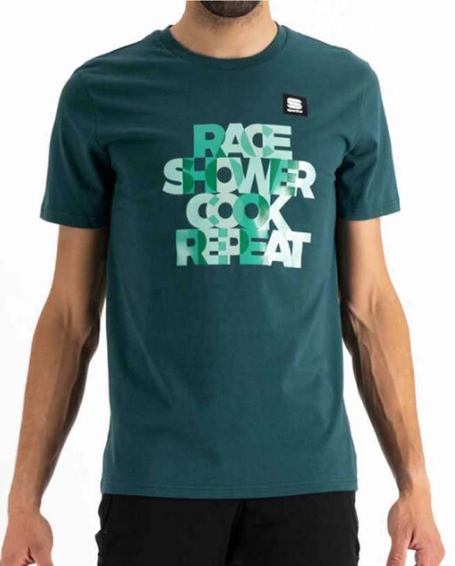 RACE SHOWER COOK REAPEAT. Udobna majica izdelana iz 100% organskega bombaža, tako da lahko svojo najljubšo ekipo podprete kjer koli.