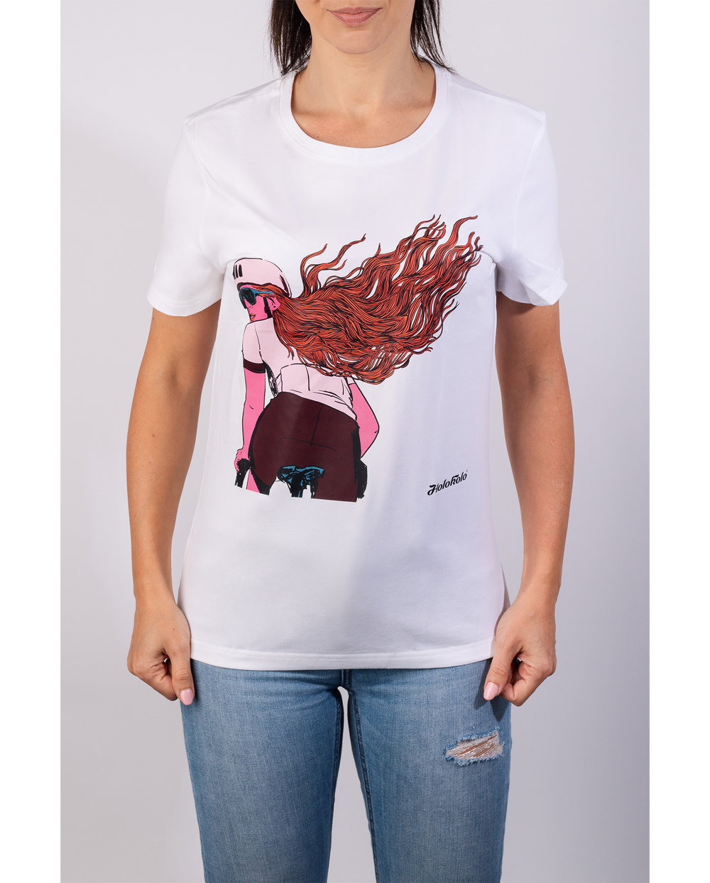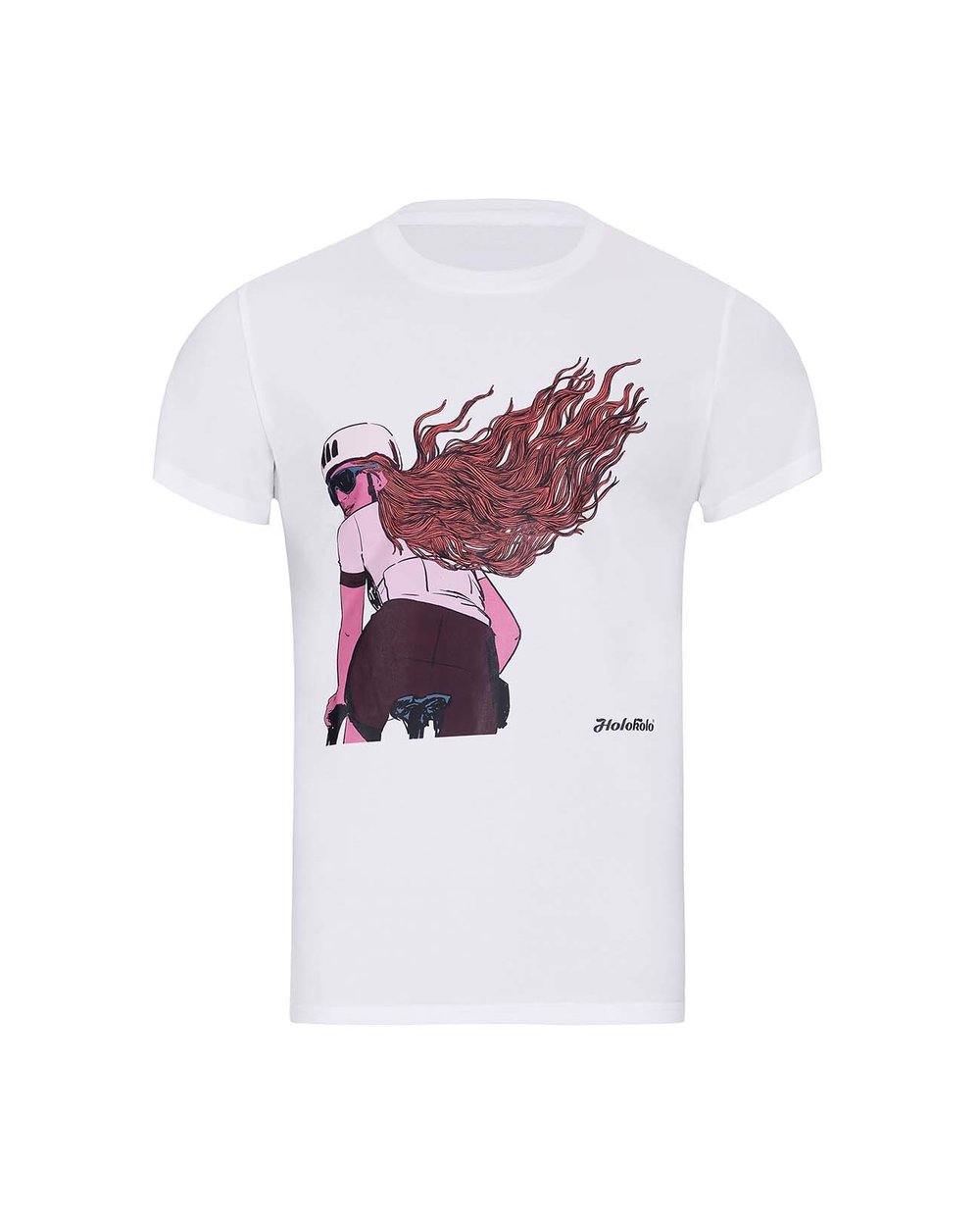 Edinstvena zasnova iz delavnice Holokolo, ki jo je navdihnilo kolesarjenje, vas bo vedno spominjala na radost pri vožnji. Majica je izdelana iz mešanice bombaža in spandeksa. Odlikuje jo udobje, zračnost, je mehka in prijetno elastična.