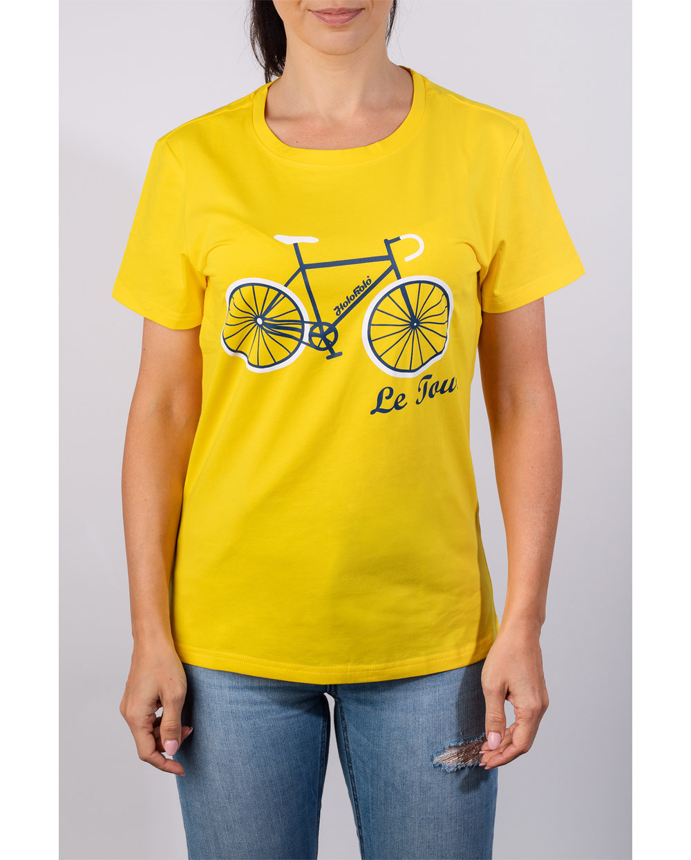 Edinstvena zasnova iz delavnice Holokolo, ki jo je navdihnilo kolesarjenje, vas bo vedno spominjala na radost pri vožnji. Majica je izdelana iz mešanice bombaža in spandeksa. Odlikuje jo udobje, zračnost, je mehka in prijetno elastična.