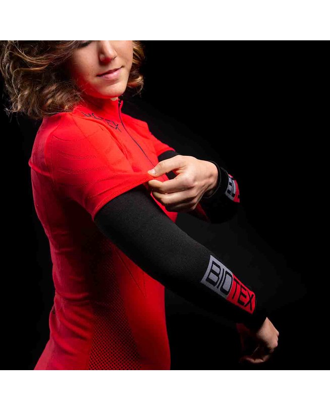Elastični rokavi iz termo tkanine. Zagotavljajo toplotno zaščito mišic rok. Omogočajo odvajanje potu s kože, ki je tako vedno suha in termično regulirana. Elastičnost tkanine in oblikovan kroj pa zagotavljajo praktično in udobno namestitev. Idealno za vse športe na prostem.