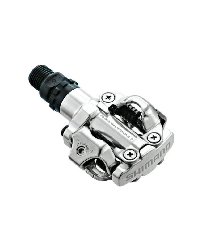 Pedala MTB PDM520 z zasnovo SPD. Reverzibilna zapornica. Osnovni pedali za začetnike kolesarje MTB. Nastavljiva sila zaklepanja za vpenjanje zamaška. Dobre lastnosti čiščenja pedal na blatnem terenu. Enostavna zasnova ušes za enostavno servisiranje iz krom-molibdenovega jekla. Priloženi z zamaški SM-SH51 za enostransko sprostitev vpenjanja.