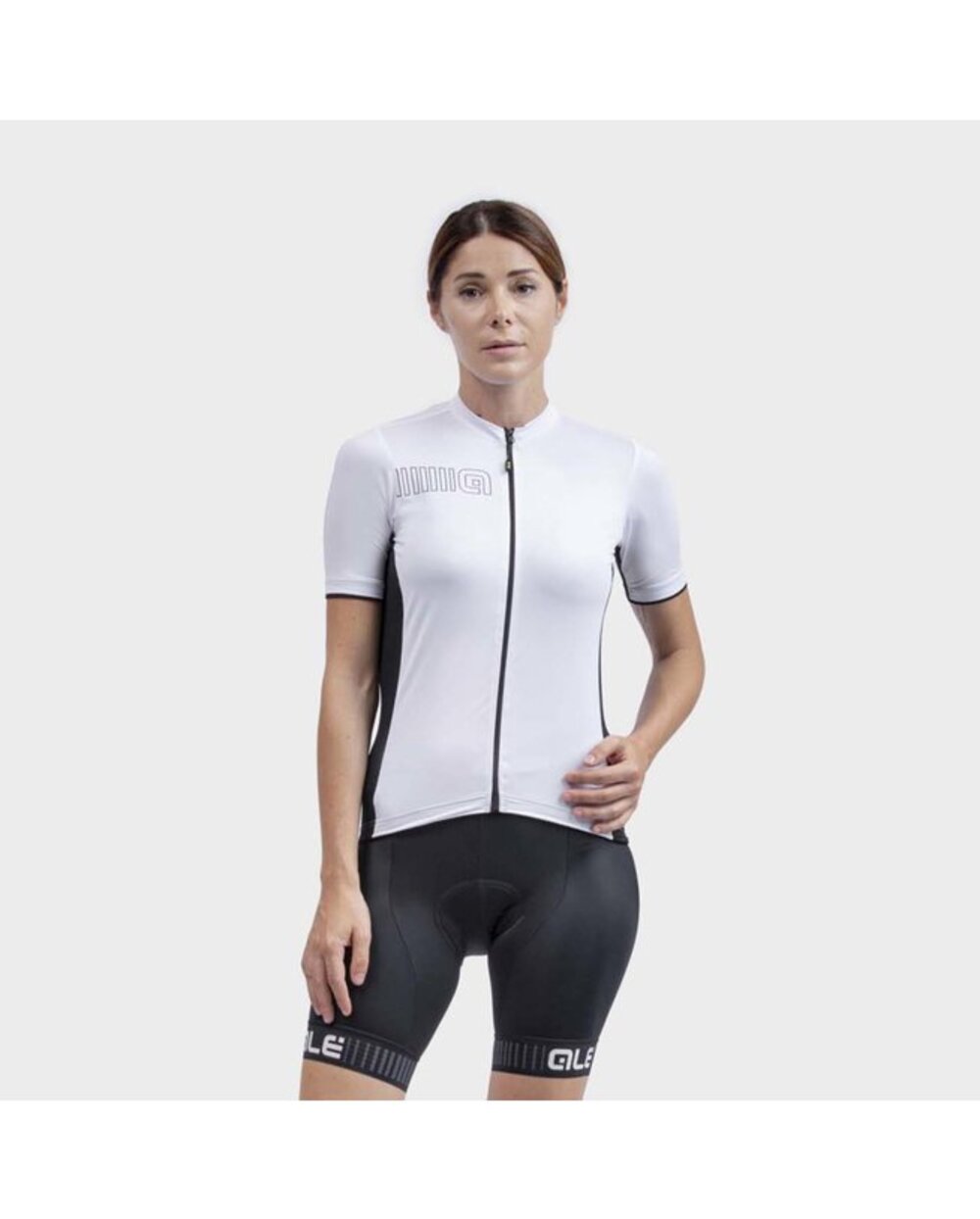 Kolesarski dres kratek rokav in kratke hlače Alé COLOR BLOCK LADY bela/črna